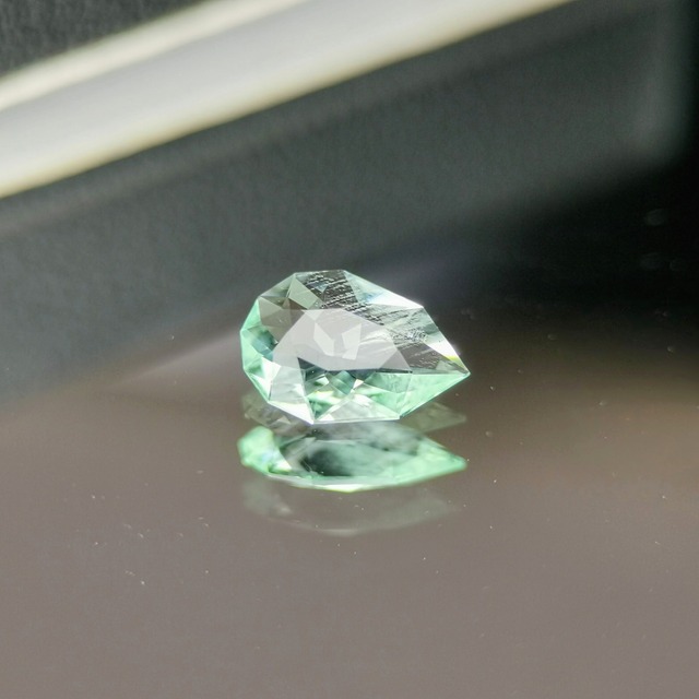 ミントグリーンの爽やかな色合いが美しく、全体としてかなりクリアな結晶で、斜めに入るライン状の内包物もいい雰囲気です。