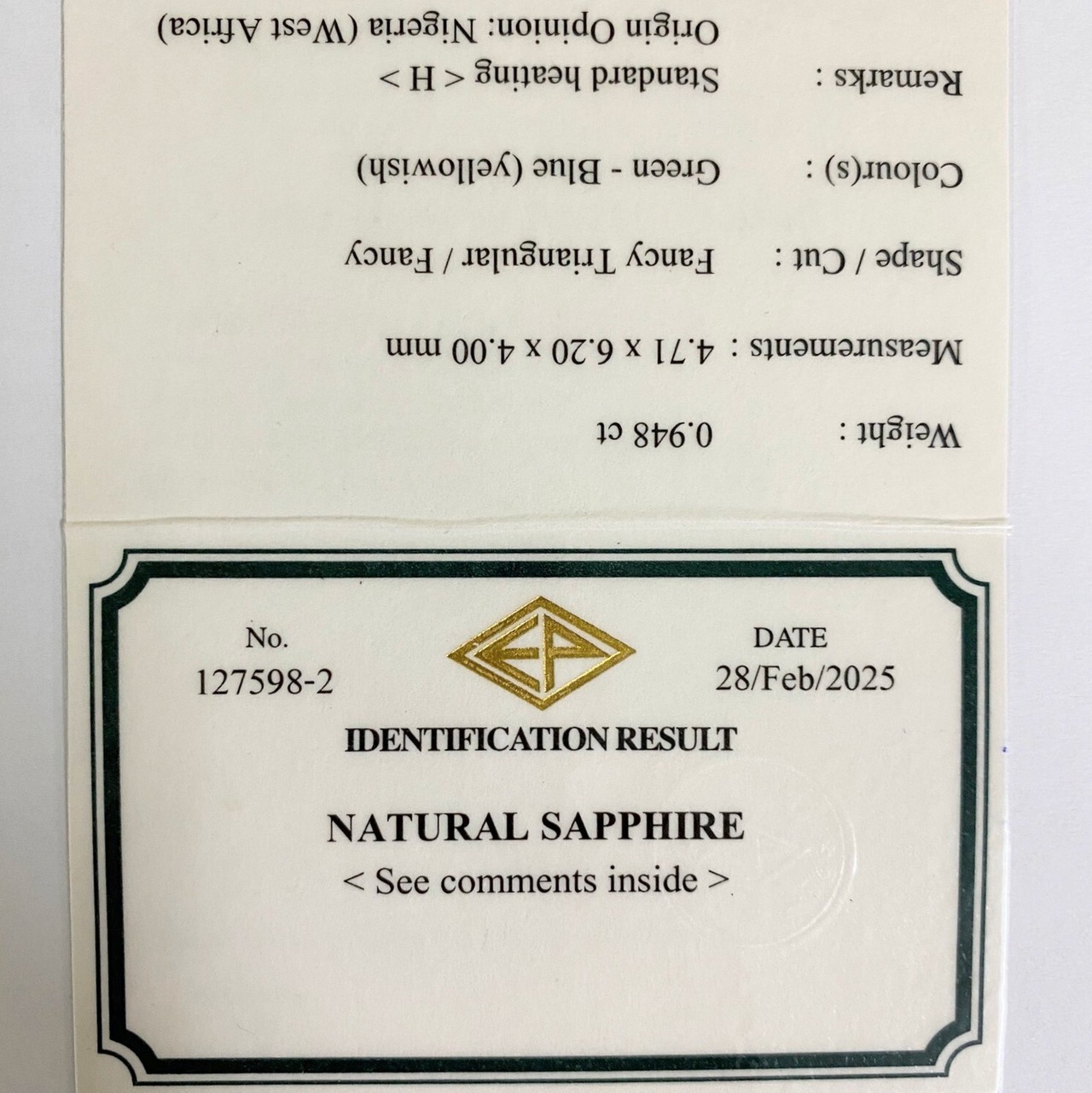 Bluish Green Sapphire 0.948ct / Nigeria