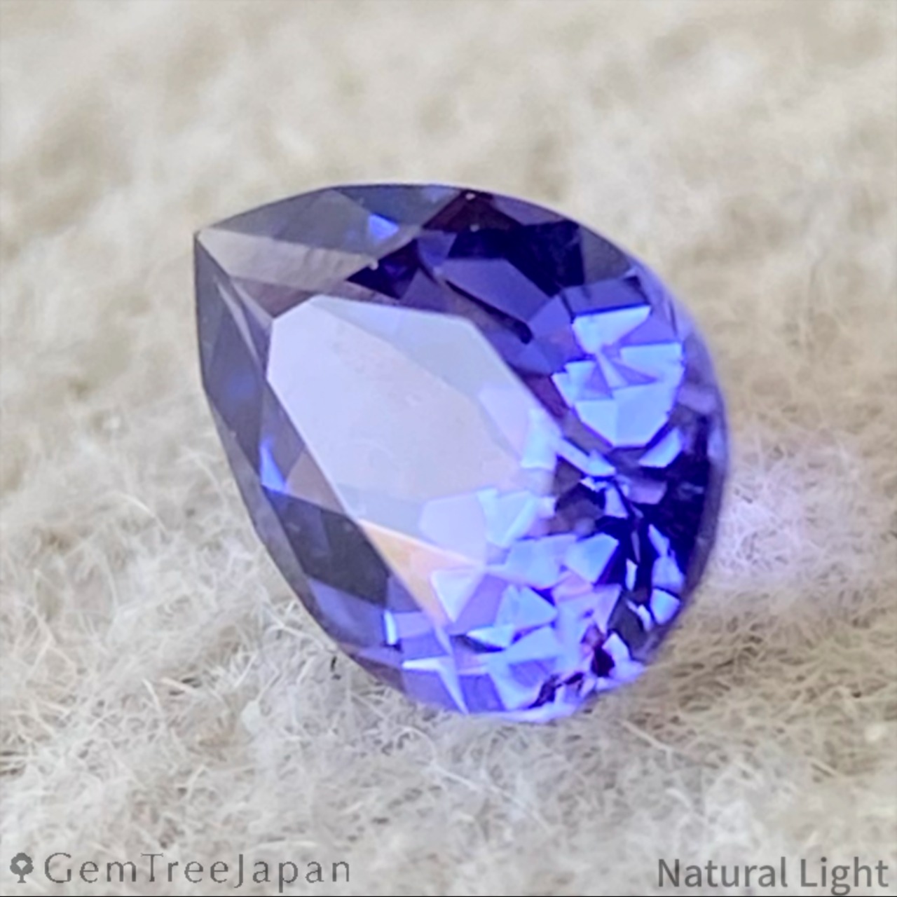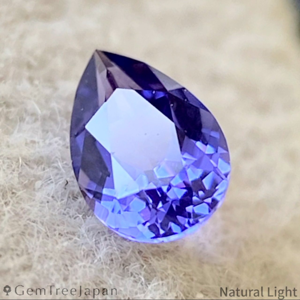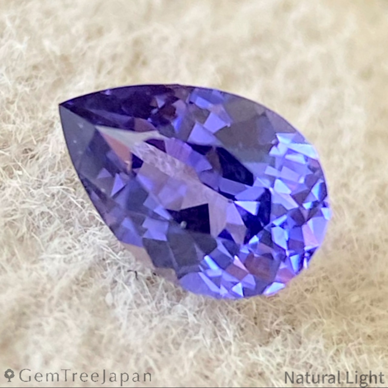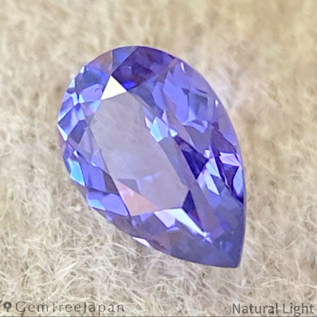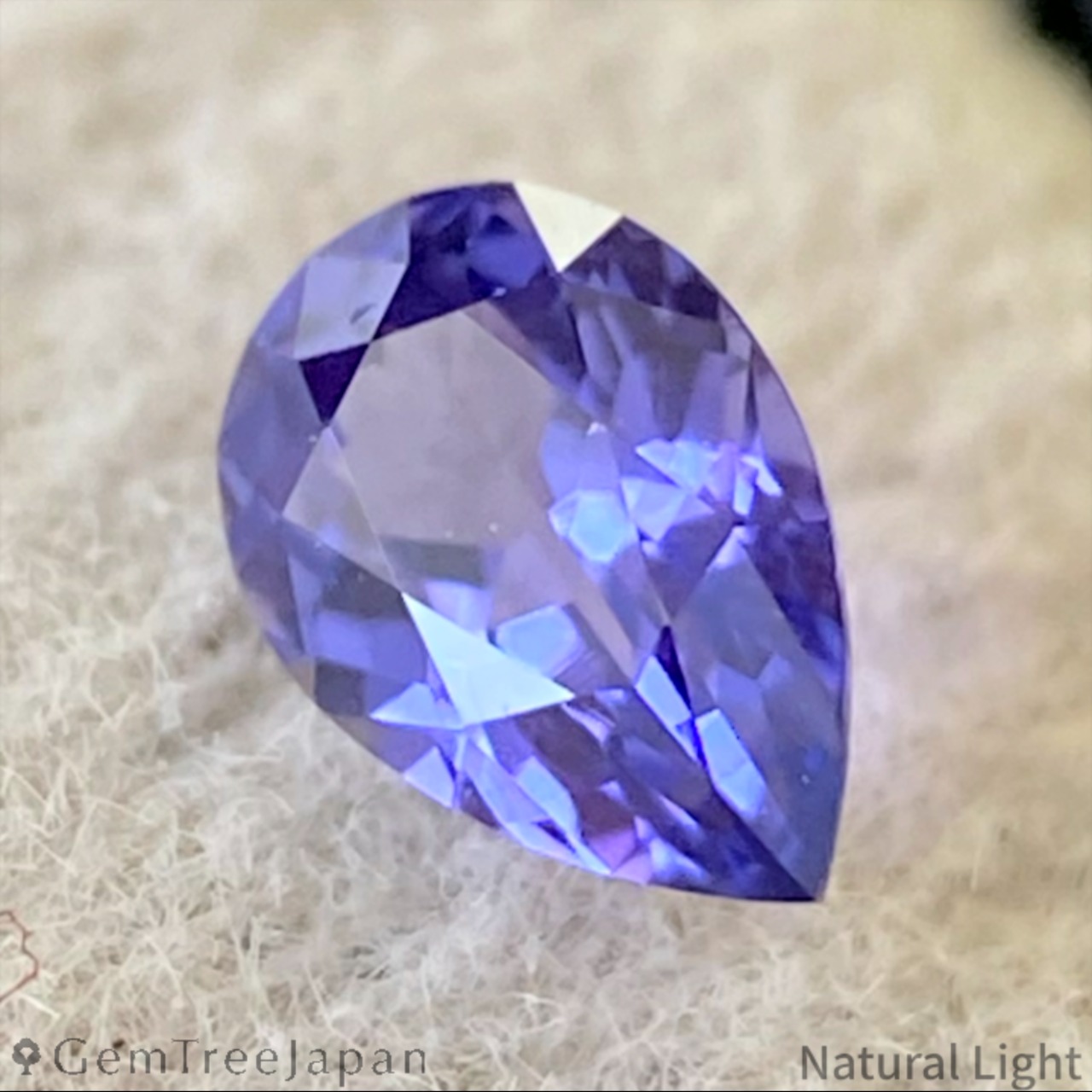 ブルーとヴァイオレットが混ざり合うベトナム産非加熱サファイアで、ペアシェイプに仕上げた作品です。