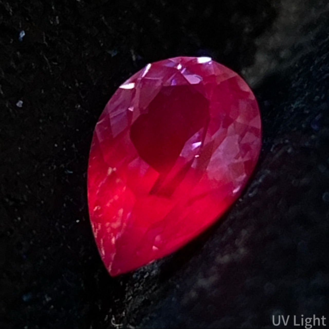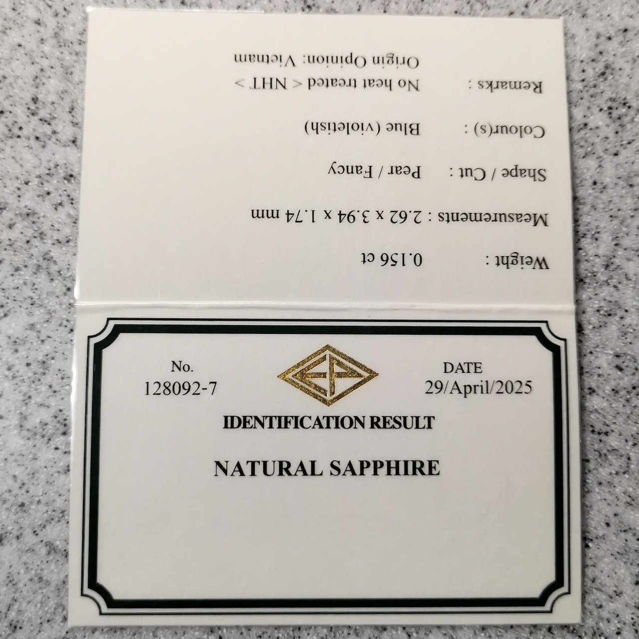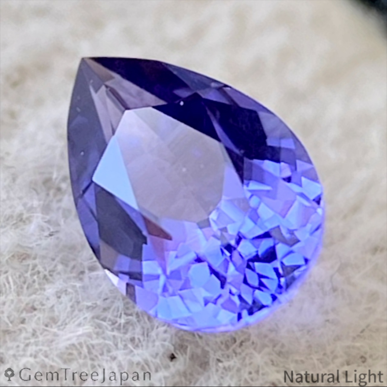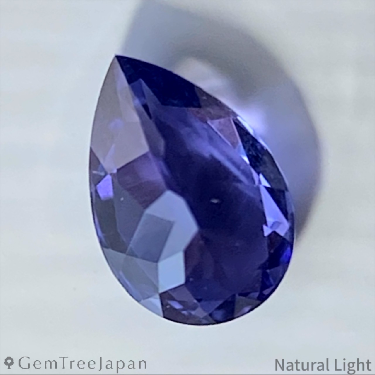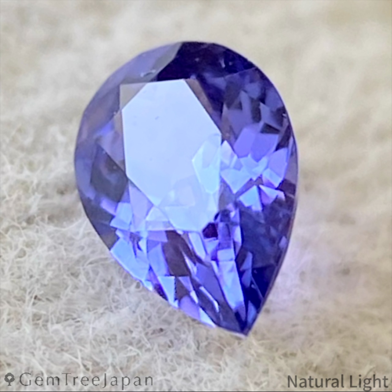 ブルーとヴァイオレットが混ざり合うベトナム産非加熱サファイアで、ペアシェイプに仕上げた作品です。