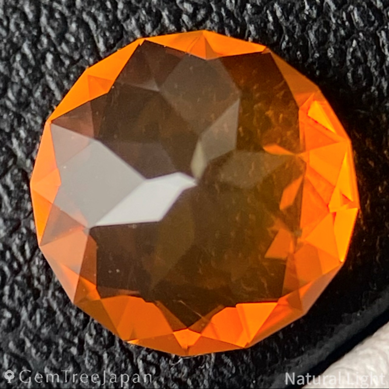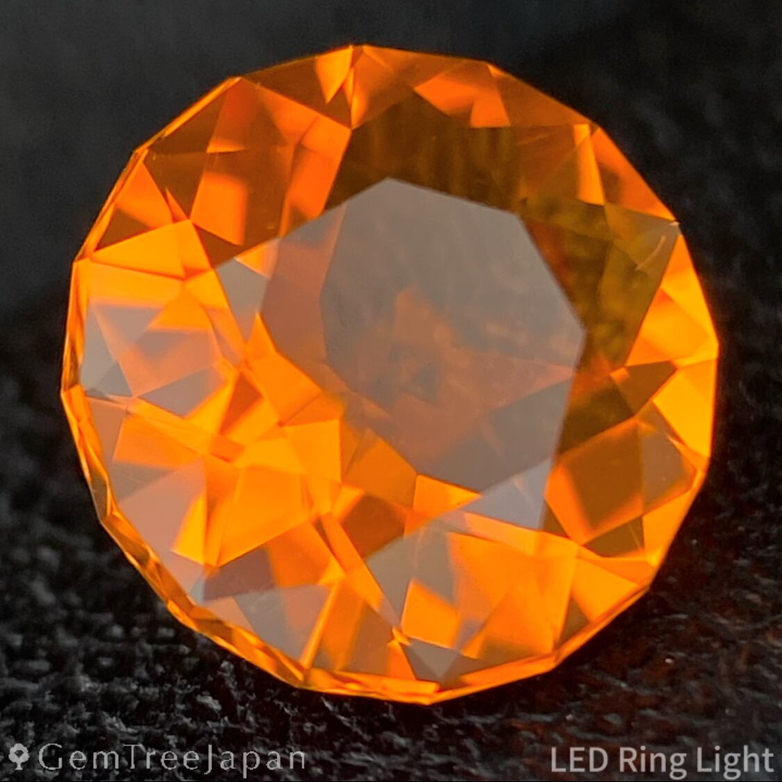 GTJ自慢のフラワーカットによる細やかなオレンジの煌めきに溢れ、強い光が当たるとイエローのきらめきも出て来ます。