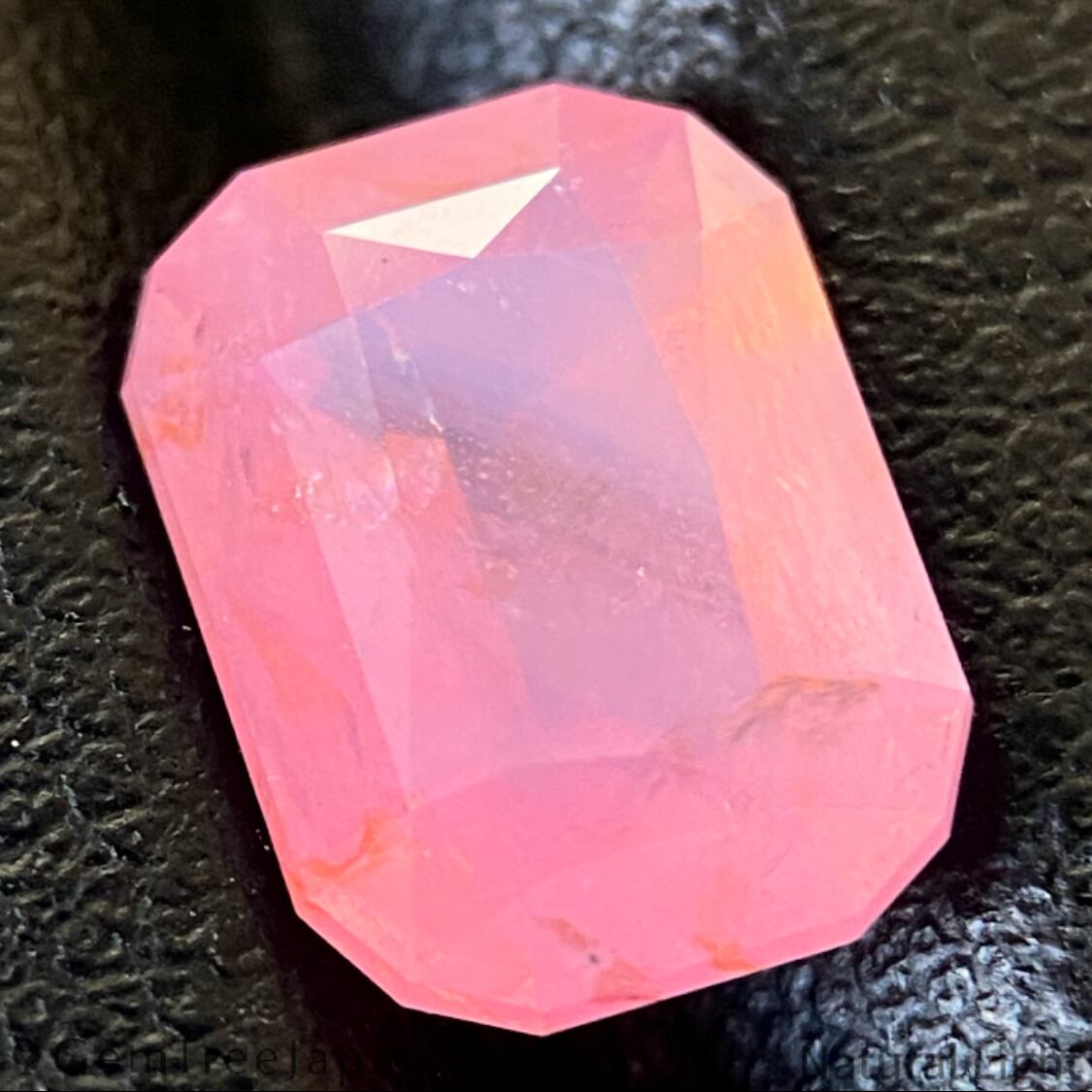 シルクのベールに覆われたピンクとオレンジが混ざり合うベトナム産の非加熱パパラチァサファイアで、通常のオクタゴンよりも休みを細かく縁取ったエレガントカットに仕上げた作品です。