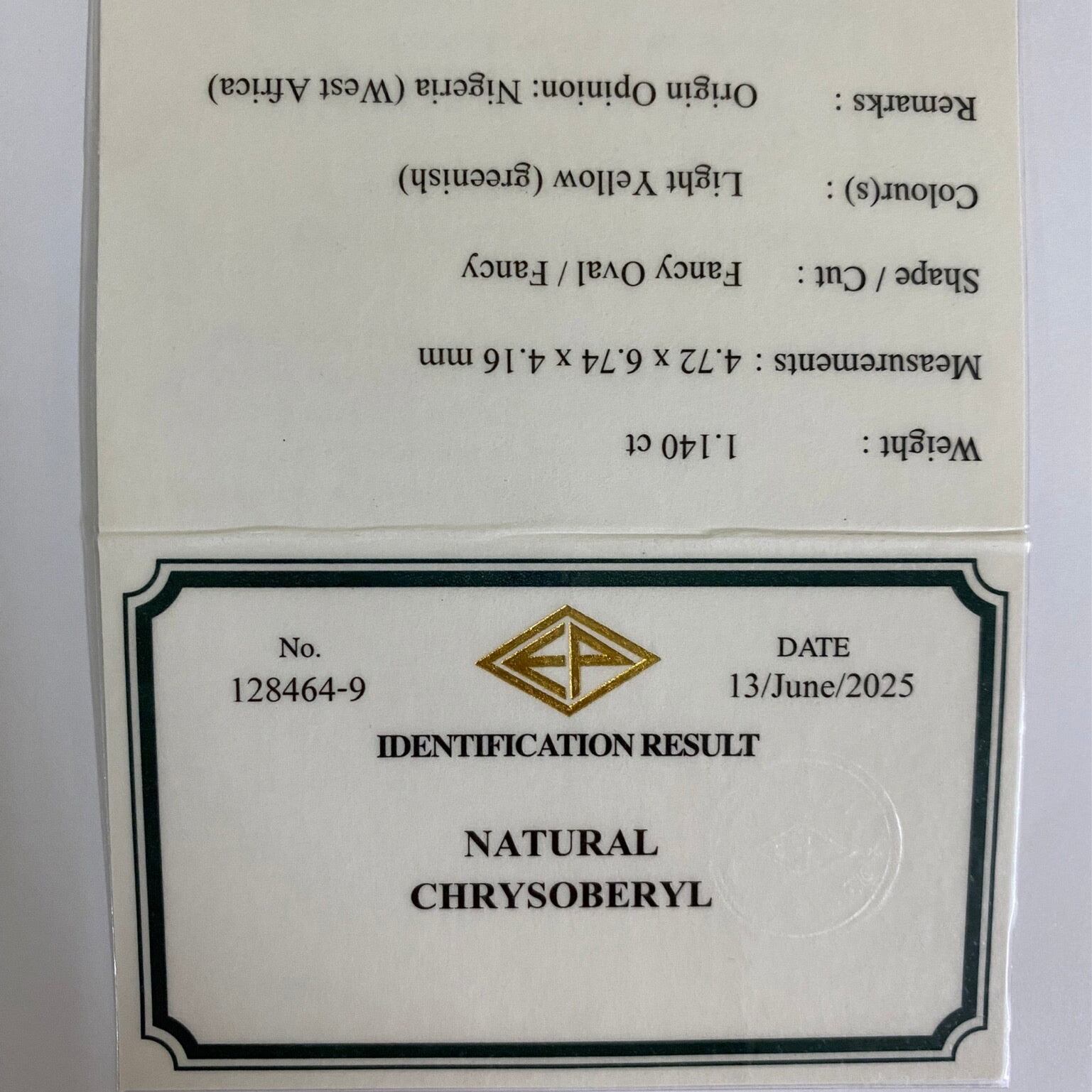 Chrysoberyl 1.140ct / Nigeria