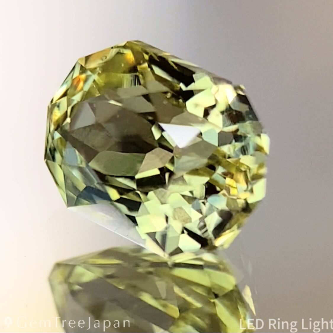パビリオン側に施したGTJ自慢のフラワーカットの細やかな煌めきに溢れ、カラフルなファイアーもチラつきます。