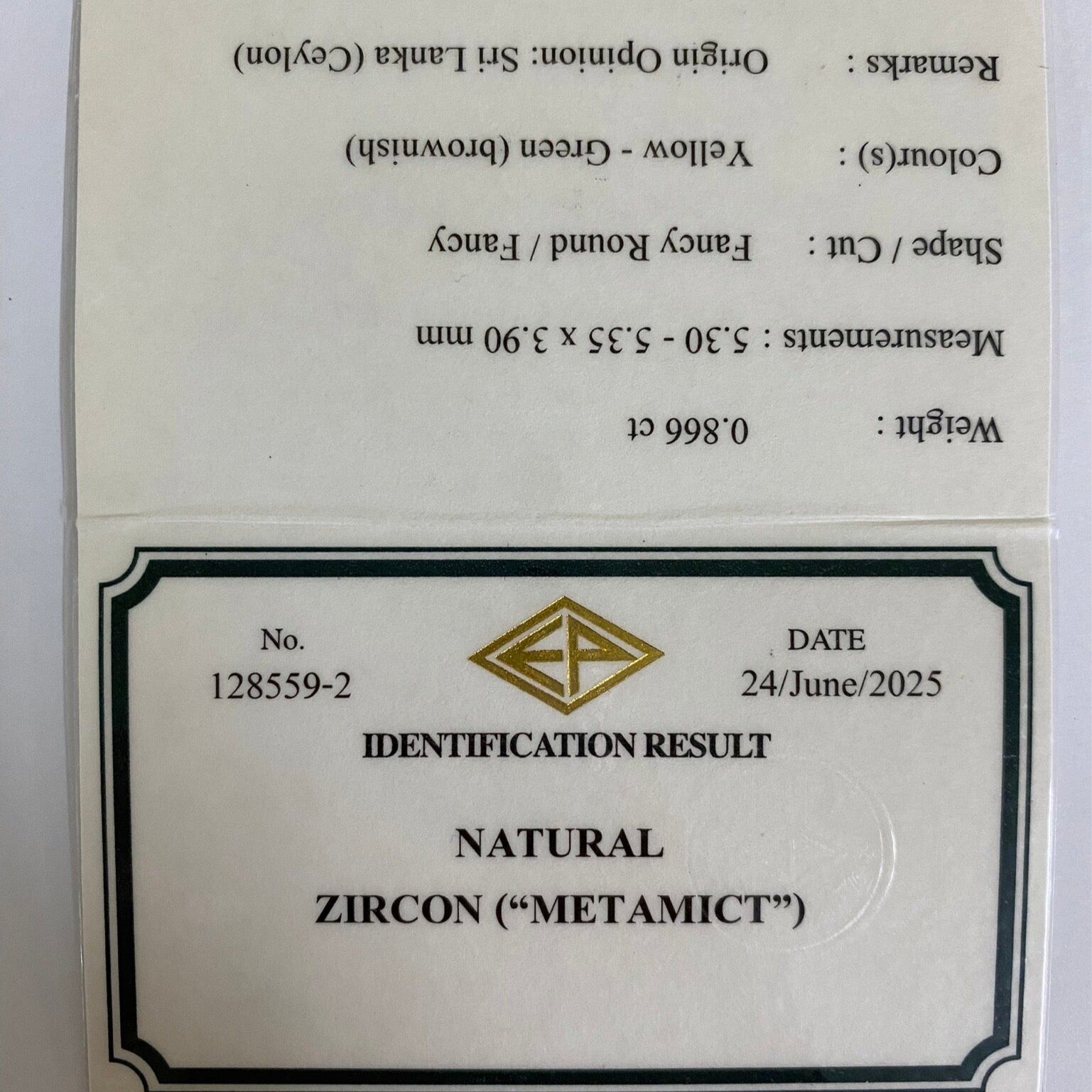 コクのある色合いのグリーンジルコンは通常のジルコンとは違い、ジルコン自身が持つ放射線元素によって内部構造が破壊される"メタミクト化"している、ジルコンの中で"ロータイプ"と呼ばれます。