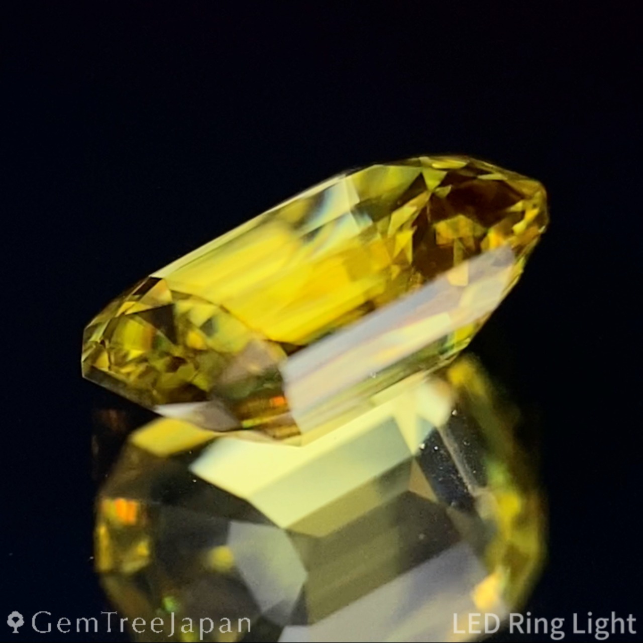 正統派ゴールドのマダガスカル産スフェーンで、通常のオクタゴンよりも四隅を細かく縁取ったエレガントカットに仕上げた作品です。