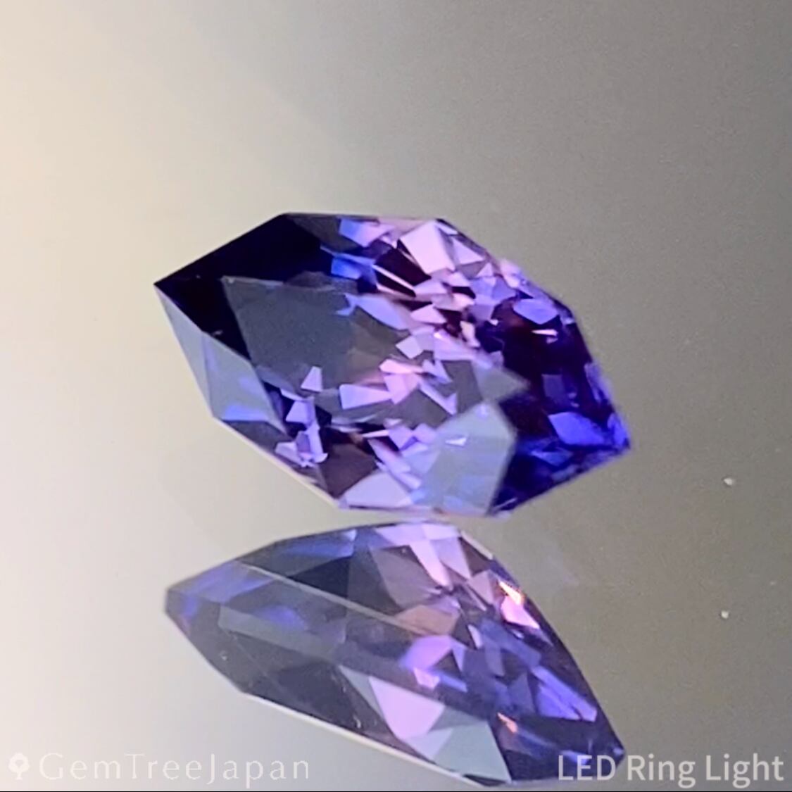 ピンクの結晶の片側にロイヤルブルーの色だまりがあるスリランカ産パーティカラーサファイアで、輪郭を細かく縁取ったファンシーマーキスに仕上げた作品です。