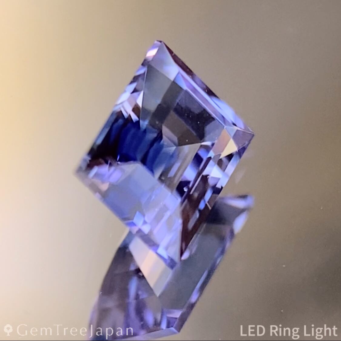 ブルーの色だまりを極力取らないように両面端正なステップカットに仕上げ、色が混ざり合う直線的な煌めきをお楽しみいただけます。