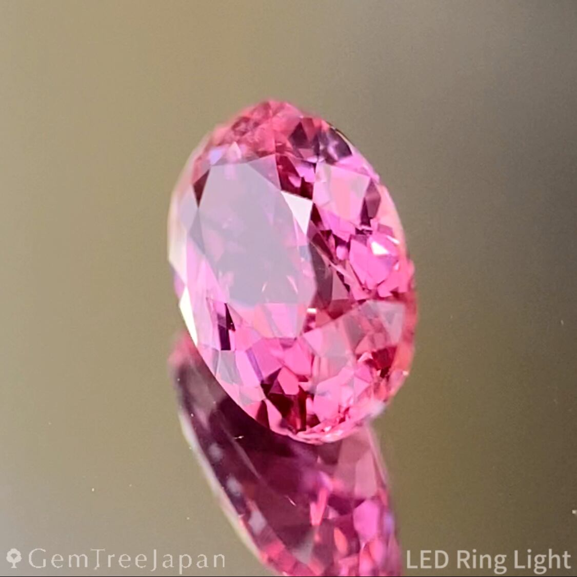 ギリギリでパパラチァカラーではありませんが、両端にオレンジーピンクの軽いネオン感のあるパパラチァカラーが溜まり、中央はパープリッシュピンクの煌めきを放ち、地色はパープルが強めの鮮やかで豊かな色合いの一石です。
