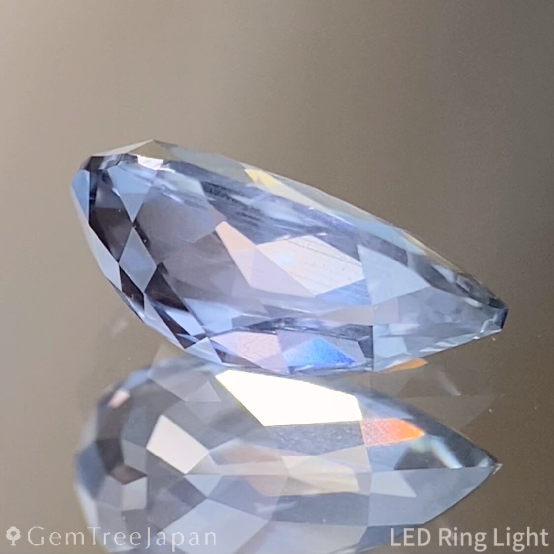 ペアシェイプの先端と丸みのある側にグリニッシュグレーが溜まり、その間を品の良いライラック・ブルー・グリーンが混ざり合った煌めきを放ち幻想的で美しいです。