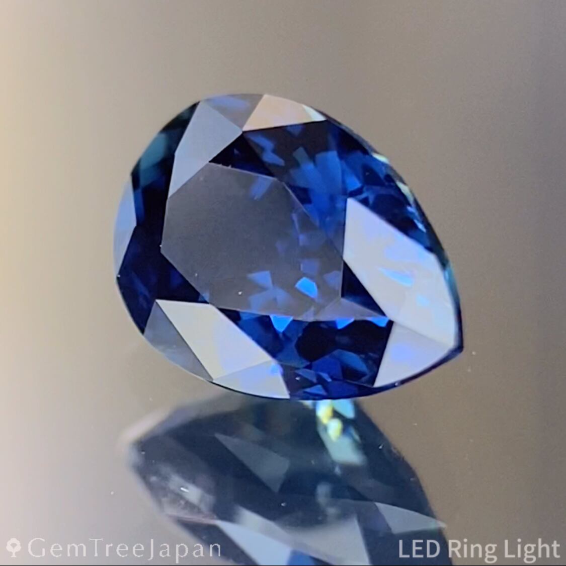 深い地色からコーンフラワーブルーにグリーンが少し混ざった色合いを放つカメルーン産のサファイアで、ペアシェイプに仕上げた作品です。