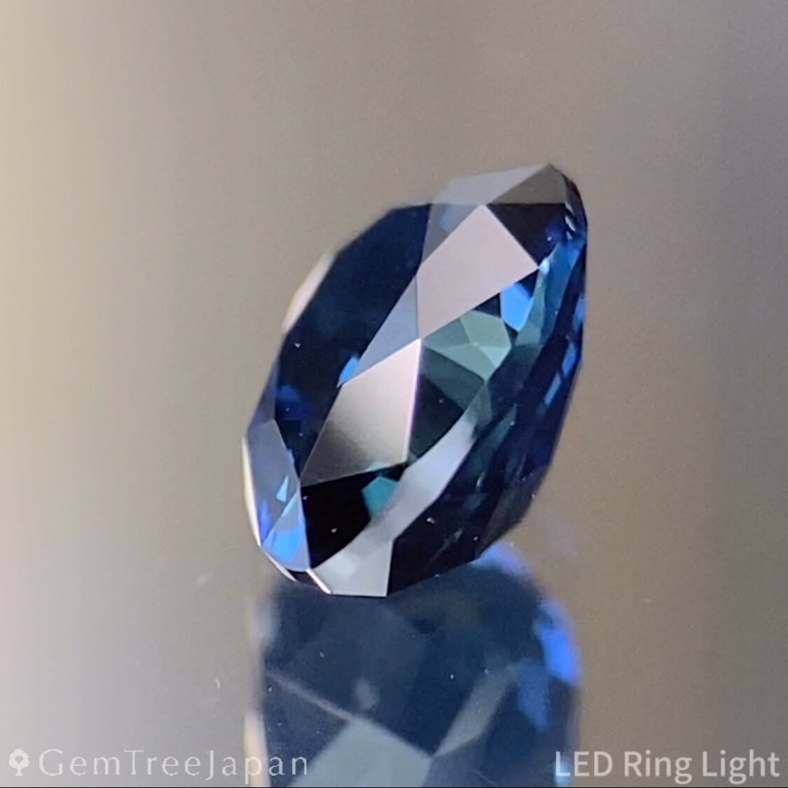 ディープブルーの地色から、フラワーカットによる細やかで鮮やかな少しグリーン寄りの美しいブルー煌めきを放ちます。
