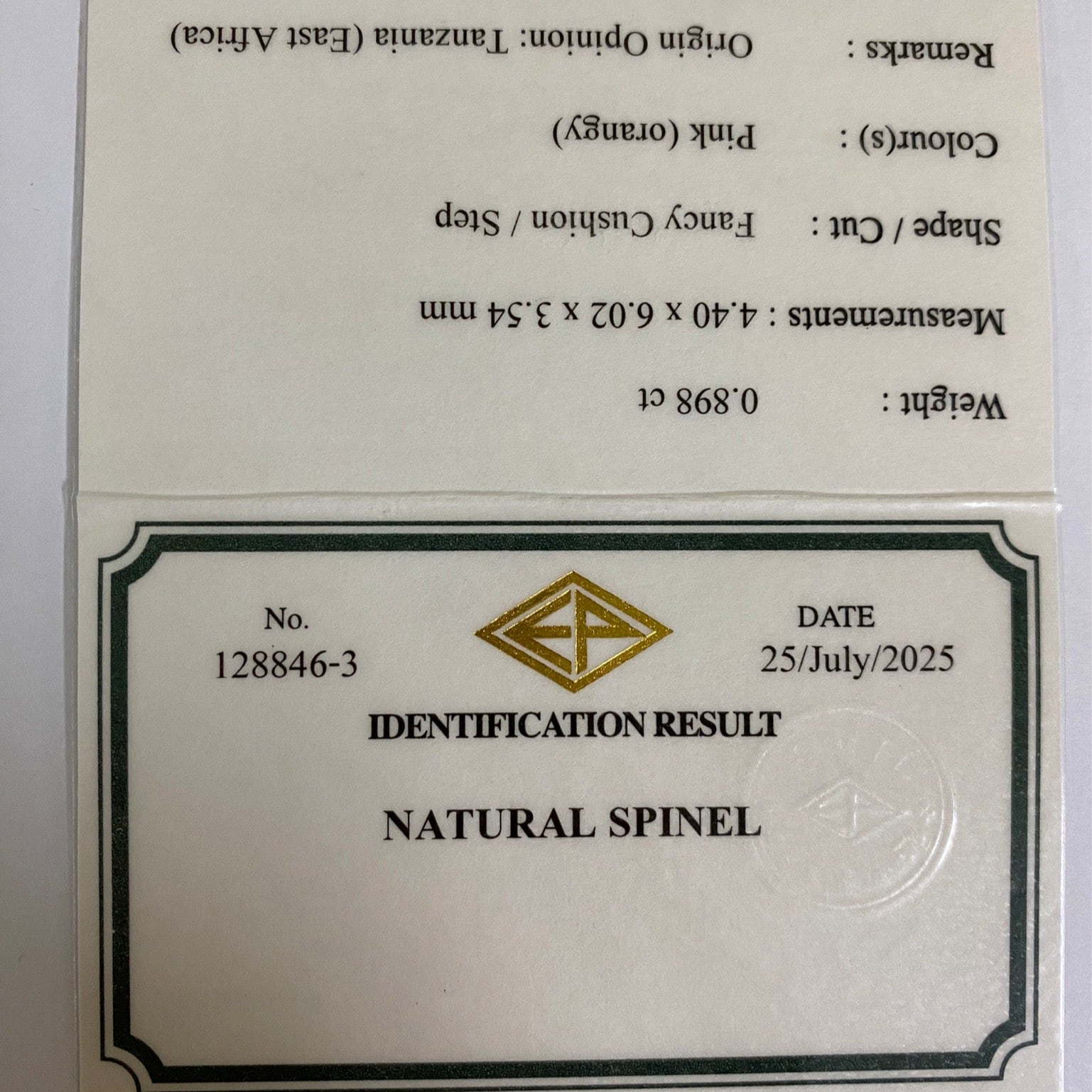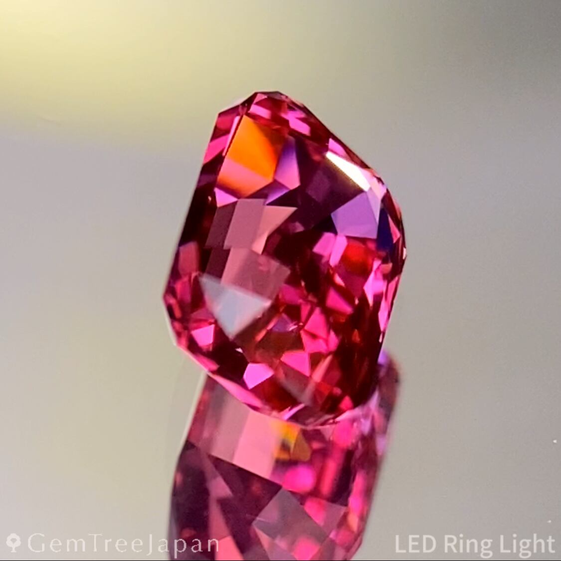 タンザニア・マヘンゲ産のスピネルから、濃厚かつ明るさを兼ね備えたネオンオレンジーピンクの輝きが生まれた極上の一石。パープルとオレンジのニュアンスが絶妙に溶け合い、透明度抜群の美しいピンクが印象的な、超美結晶です。