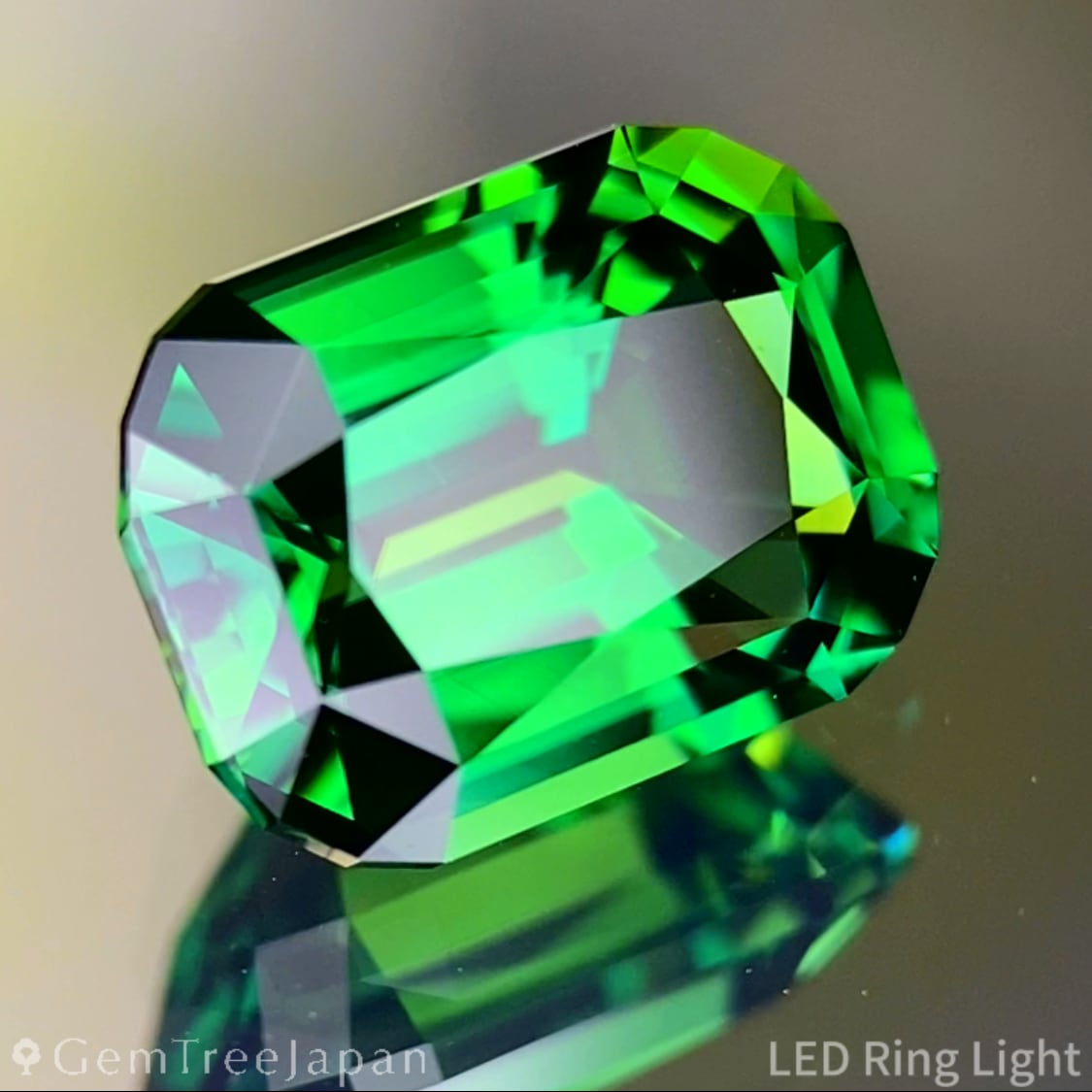 トルマリン特有の多色性も感じさせるカラーの揺らぎ、美しく整ったプロポーション、熟練カッター「ピアッちゃん」による緻密なファセットワーク。