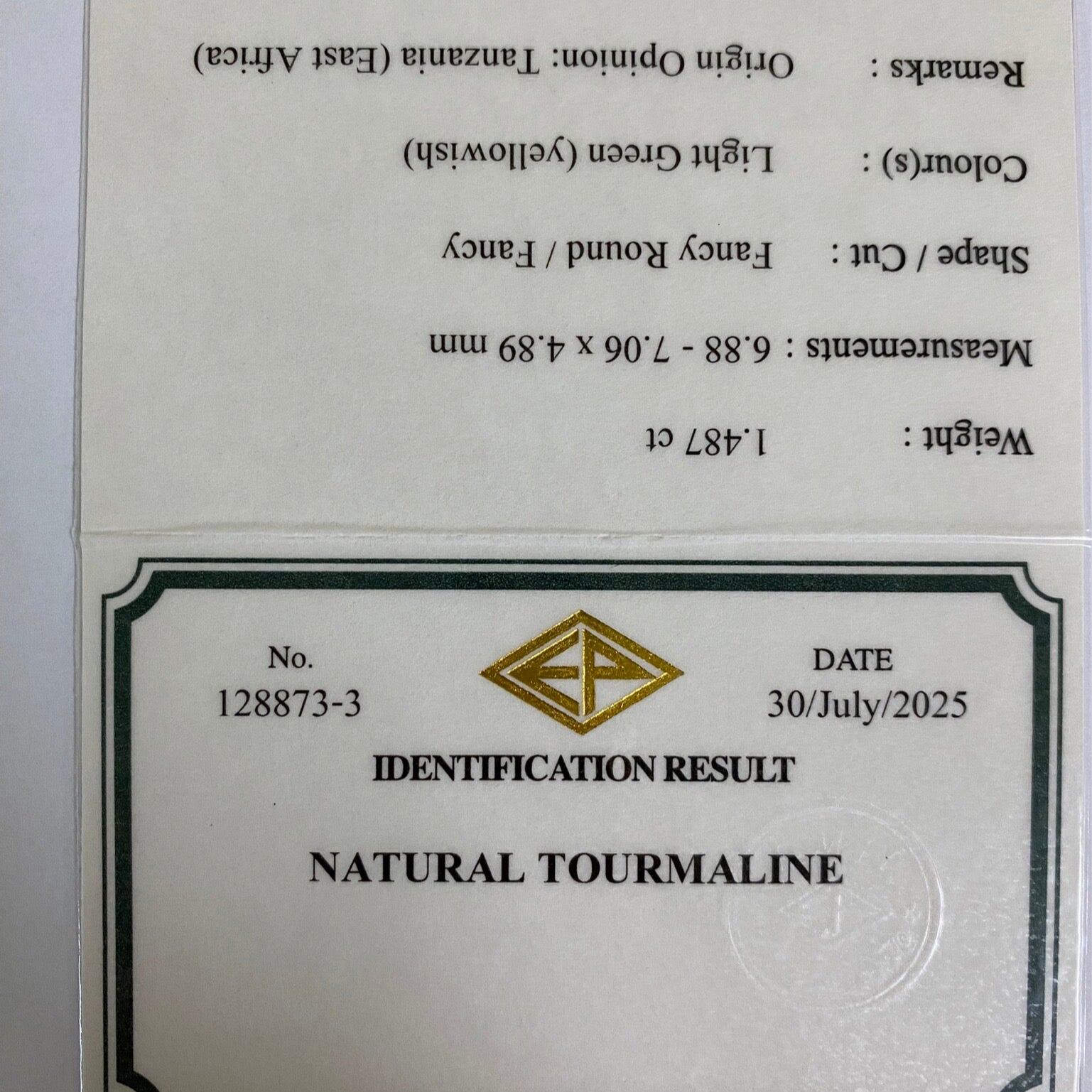Light Green Tourmaline 1.487ct / Tanzania