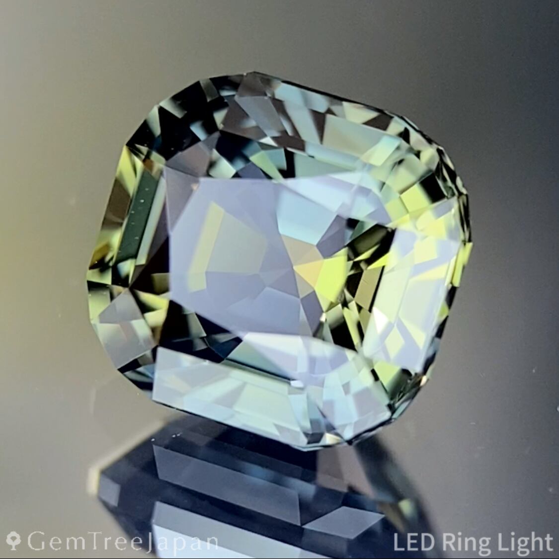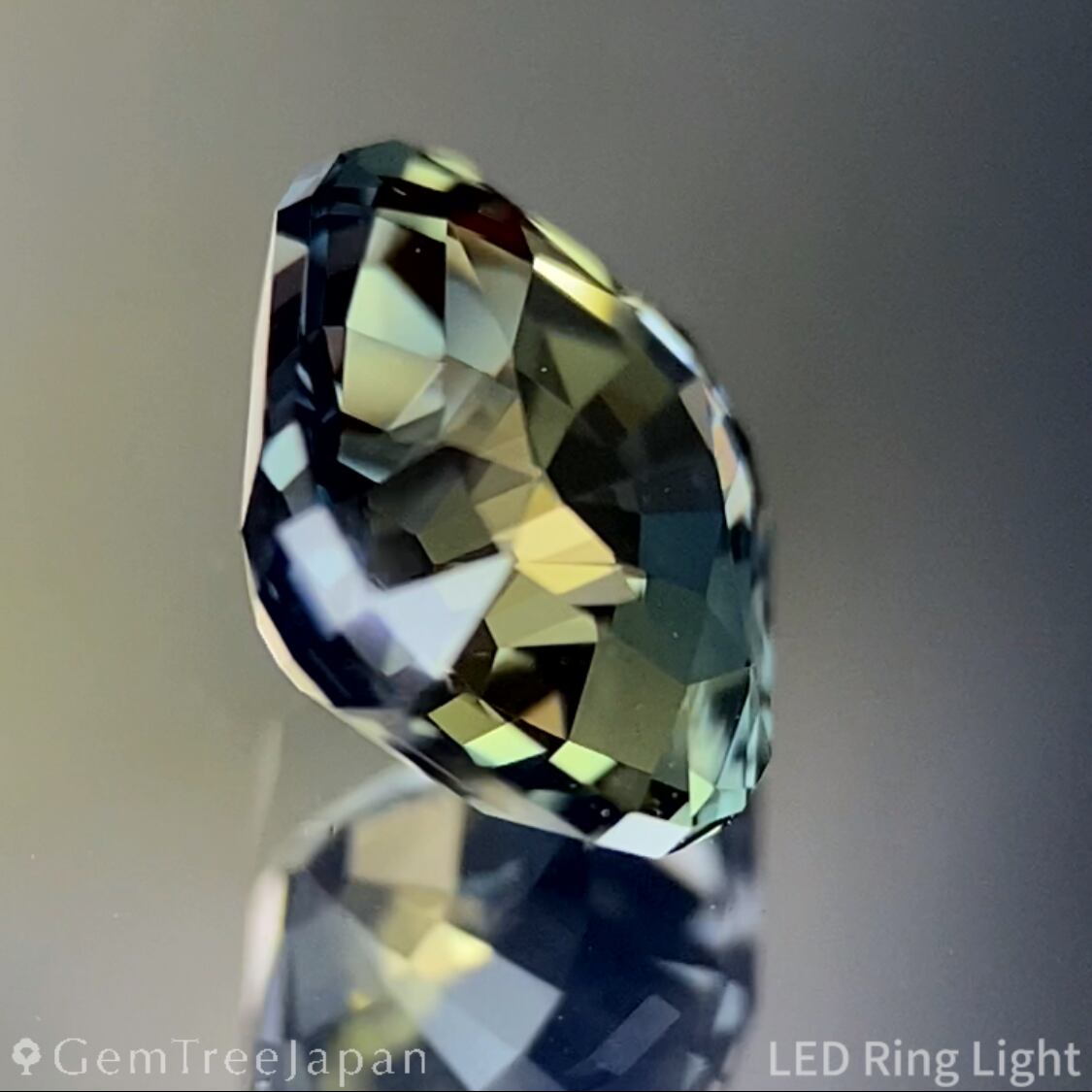 パビリオン側は端正なステップカットで、全体に凛とした整いを与えています。