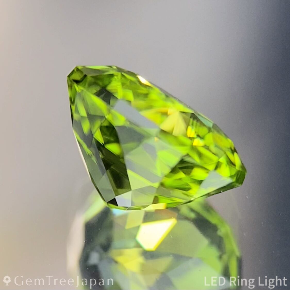 ファイアーがちらつき、どこかマダガスカル産グリーンスフェーンを思わせる雰囲気があります。