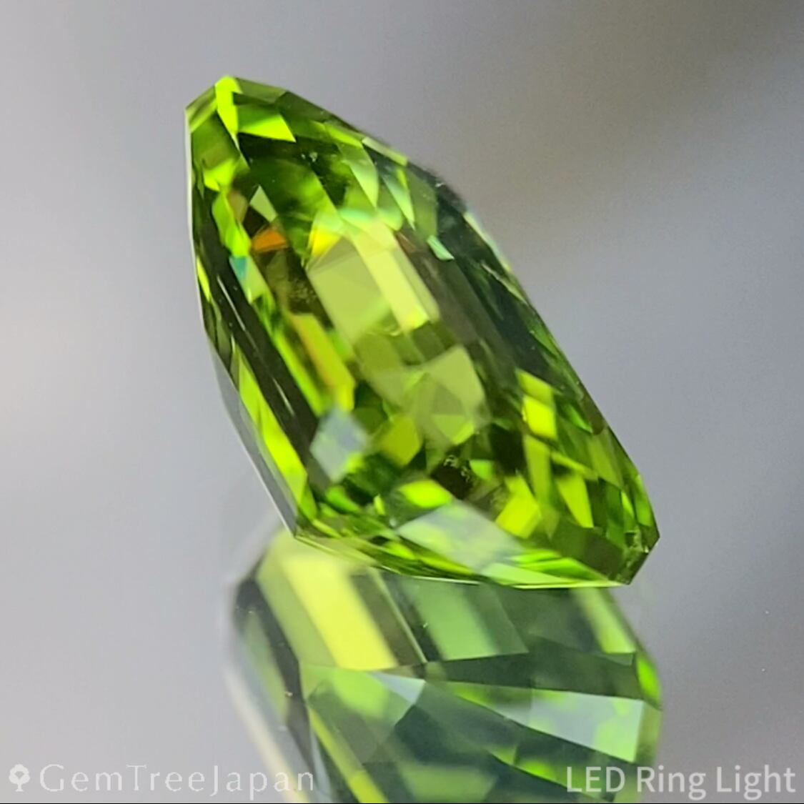鮮やかなイエローイッシュグリーンが、澄んだ透明感とともにすっと広がるベトナム産ペリドット。