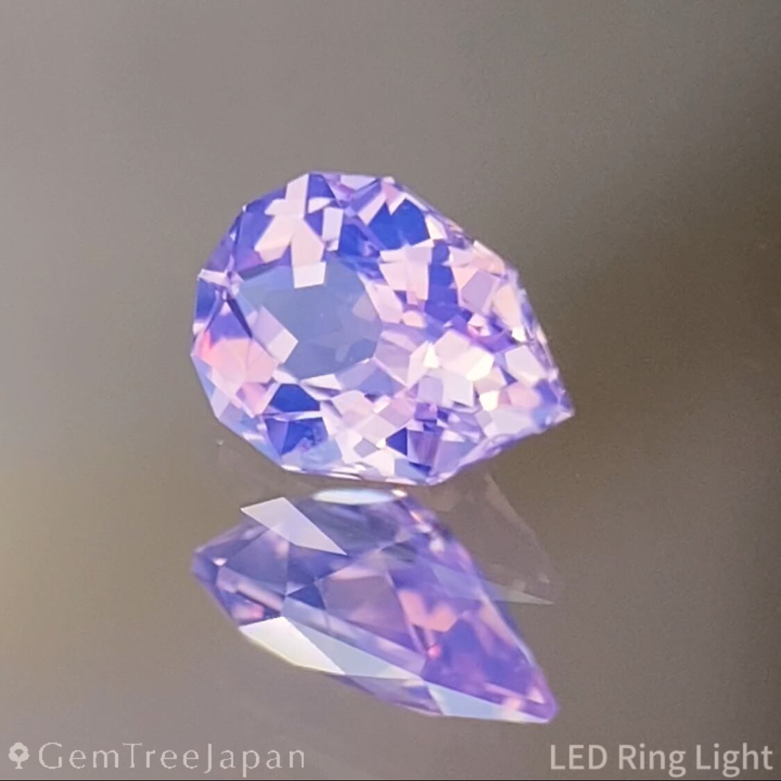 光を受けるとふわっと結晶に光がたまり、ラベンダーが青みを増したり、光源によって異なる表情を見せるのも魅力です。