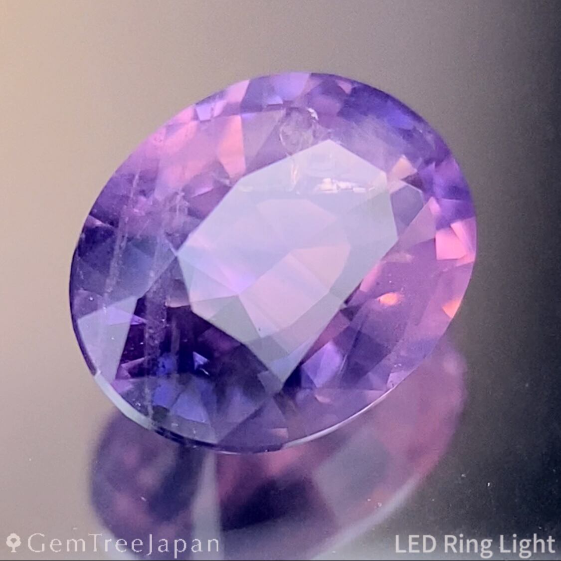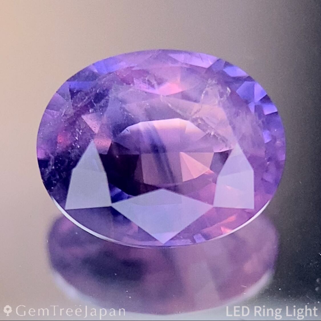 ブルーを帯びた落ち着きのあるピンクに、カラーバンドと色だまりが交錯するベトナム産の非加熱パーティカラーサファイアです。