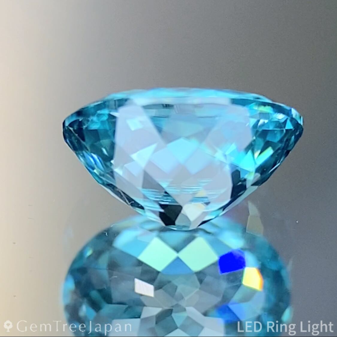 ブルージルコン特有の強いファイアーはもちろん、ルーペ越しには複屈折による“ダブリング”が現れ、煌めきが二重に重なって見える特別な表情を楽しめます。