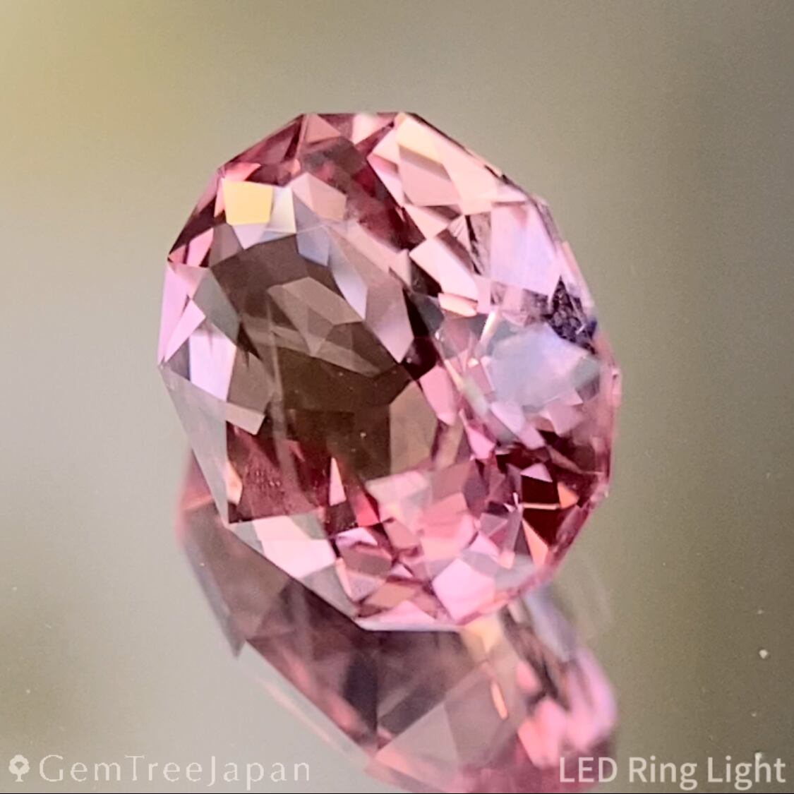 比較的厚みのない結晶ながら、クラウンに広がる繊細なフラワーカットが光を巧みに取り込み、角度を変えるごとに中央からも煌めきが立ち上がります。