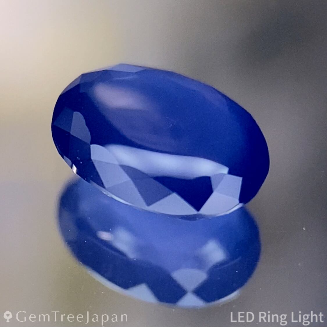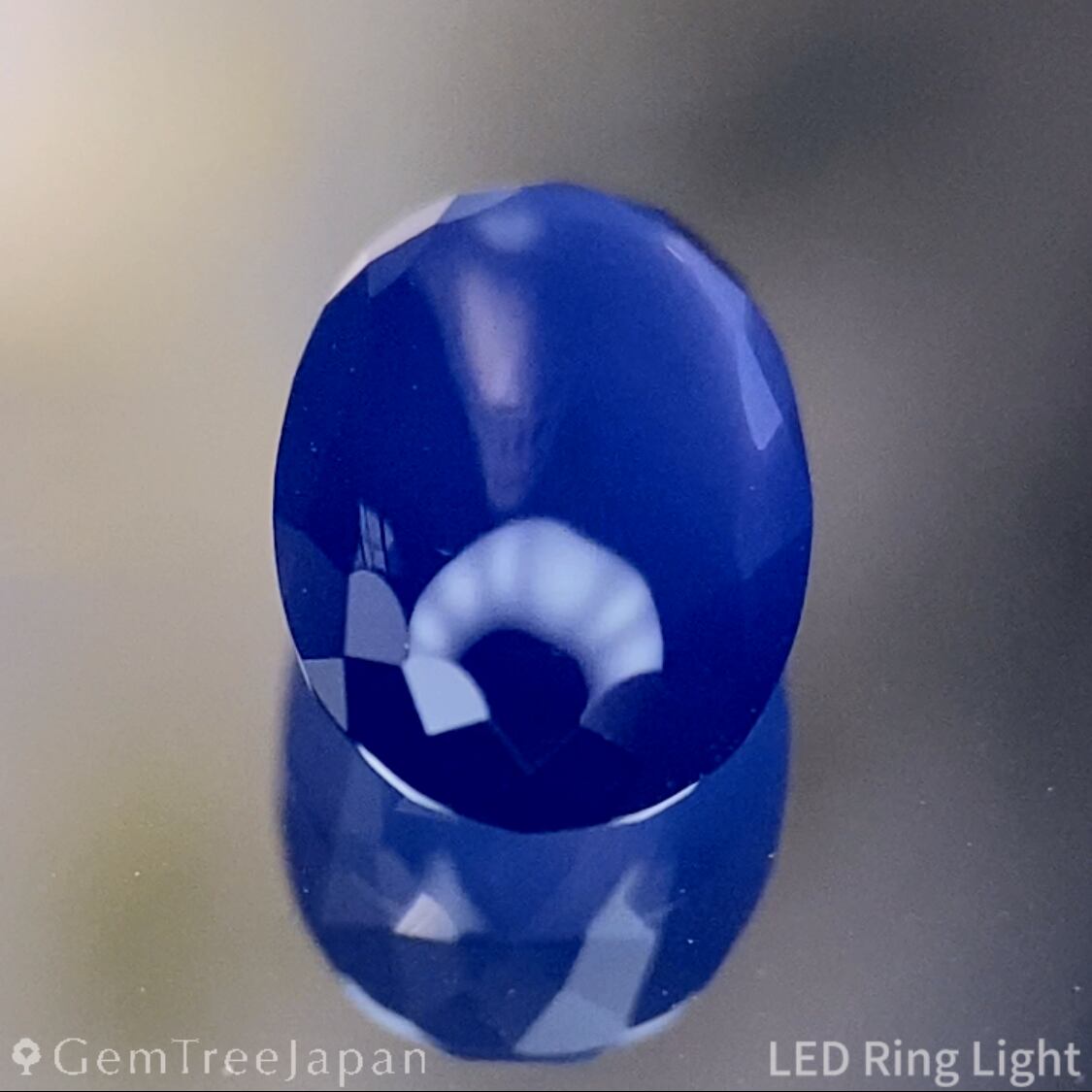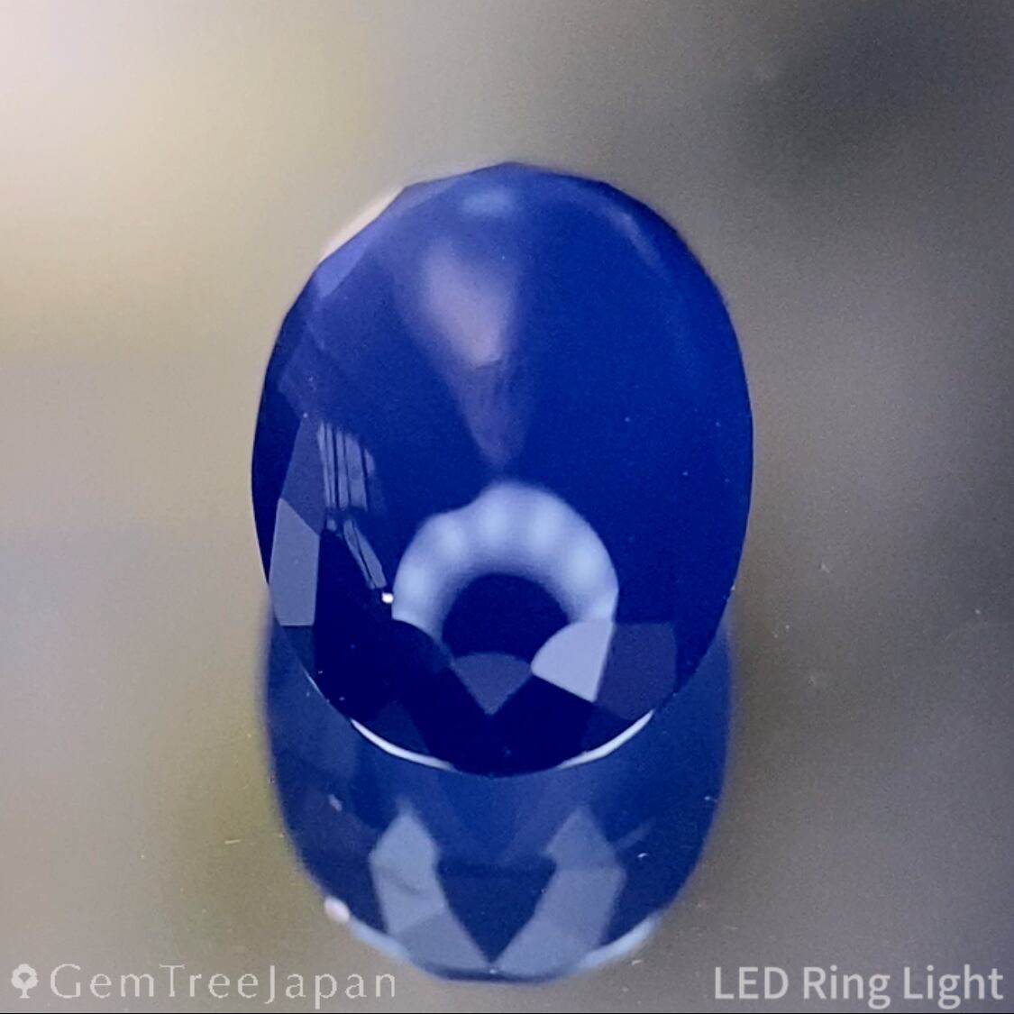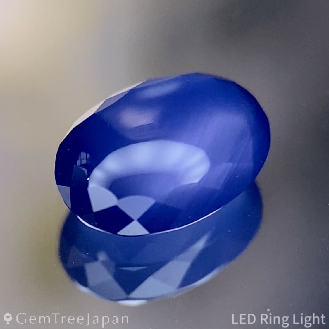 強い光を当てると、両面共に片側に6条のスターが浮かび上がります。正面にハッキリ出ないのでスターサファイアではなくサファイアでの紹介となりました。