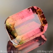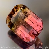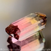 オレンジを帯びたピンクと、コクのあるオリーブグリーンが「3対1」の割合で並ぶ、バイカラーらしいコントラストが際立つ結晶です。