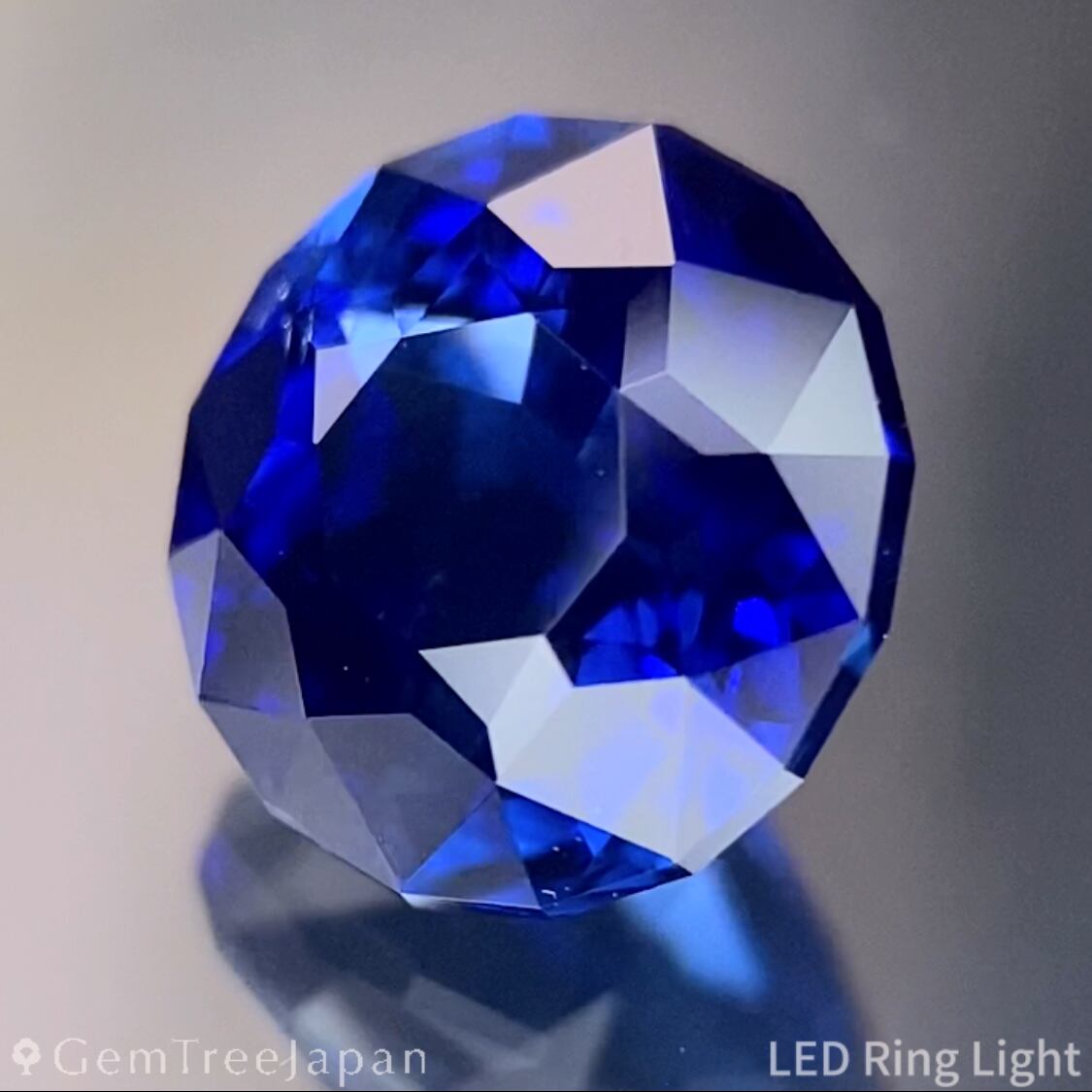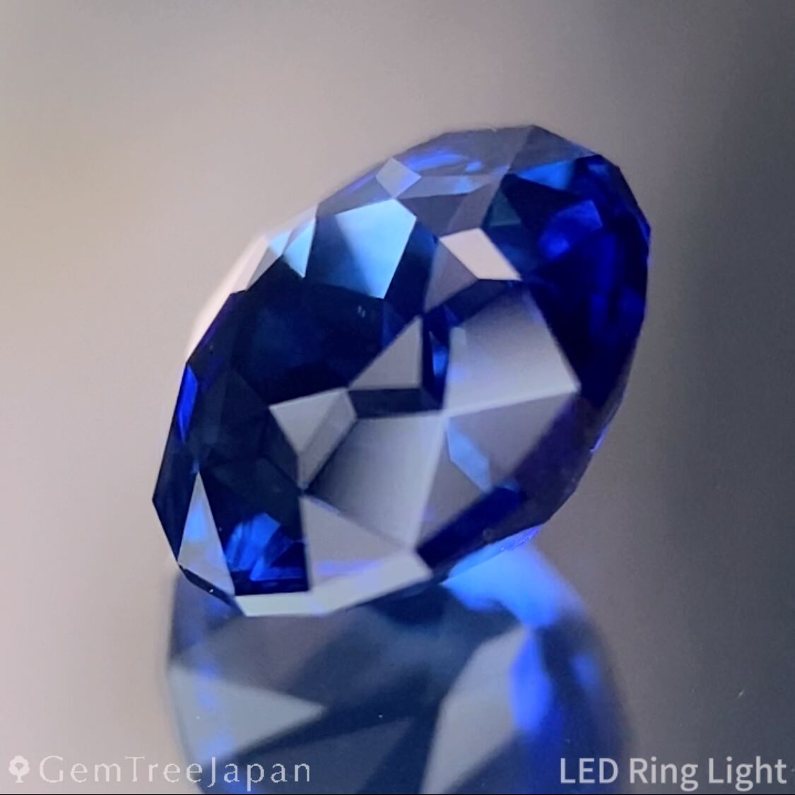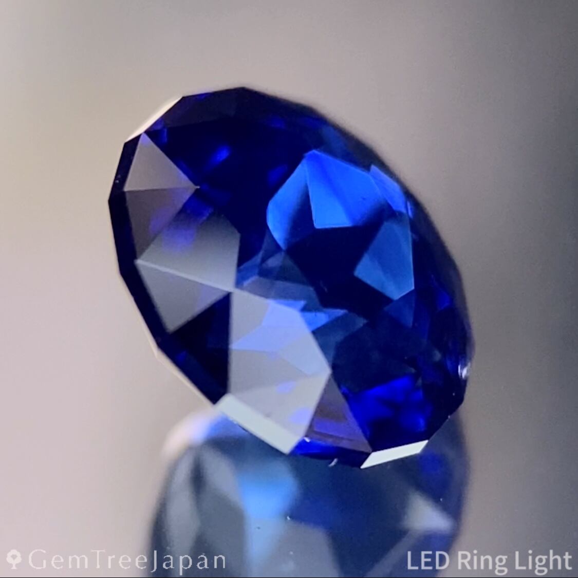 深く濃いロイヤルブルーが綺麗なだけでなく、カラーバンドが生み出す個性と美しさや、カットによる強い煌めきなど魅力が溢れる作品です。