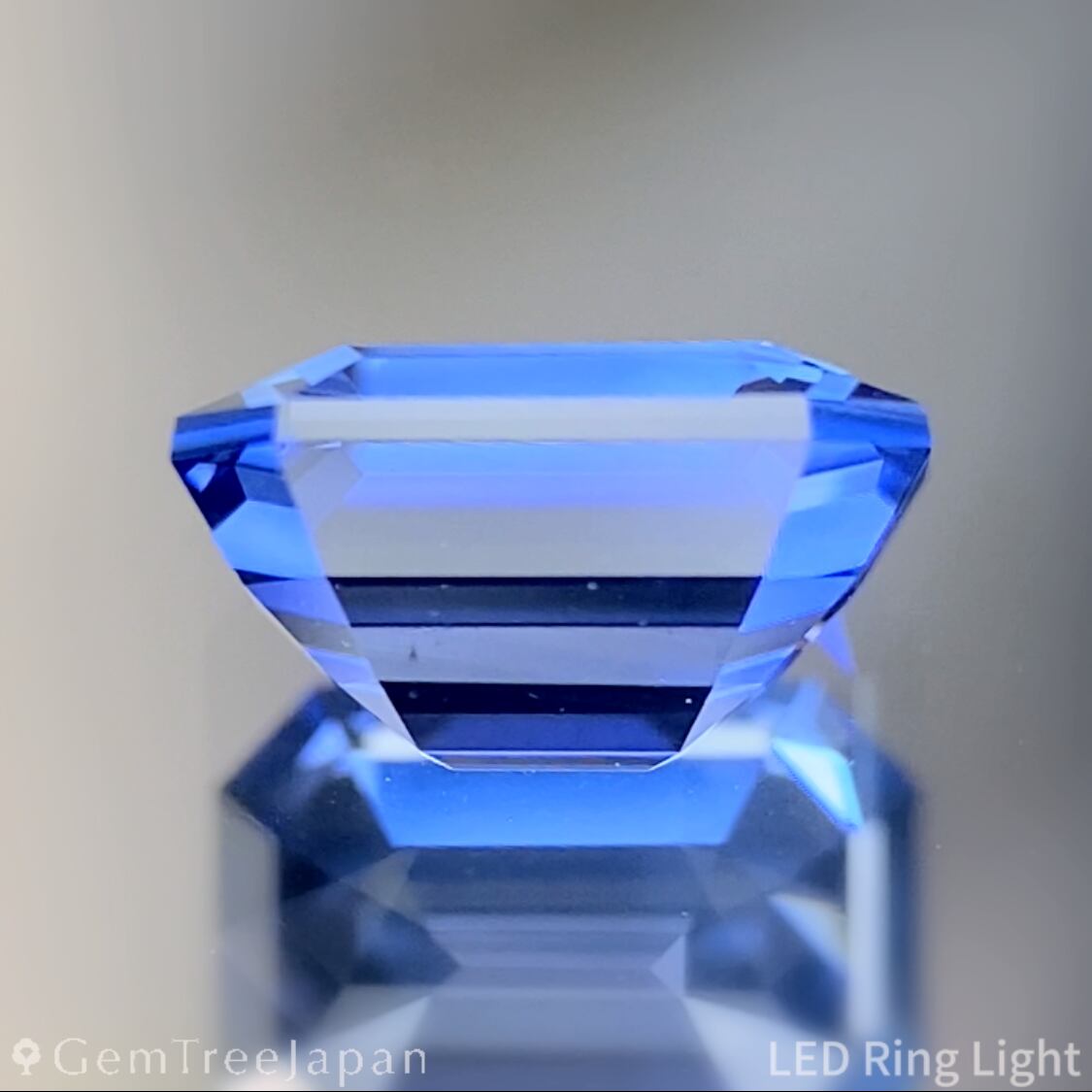 テーブル脇にわずかに白い筋状のインクルージョンがありますが、肉眼ではほとんど確認できないレベルで、全体の透明感を損なうものではありません。