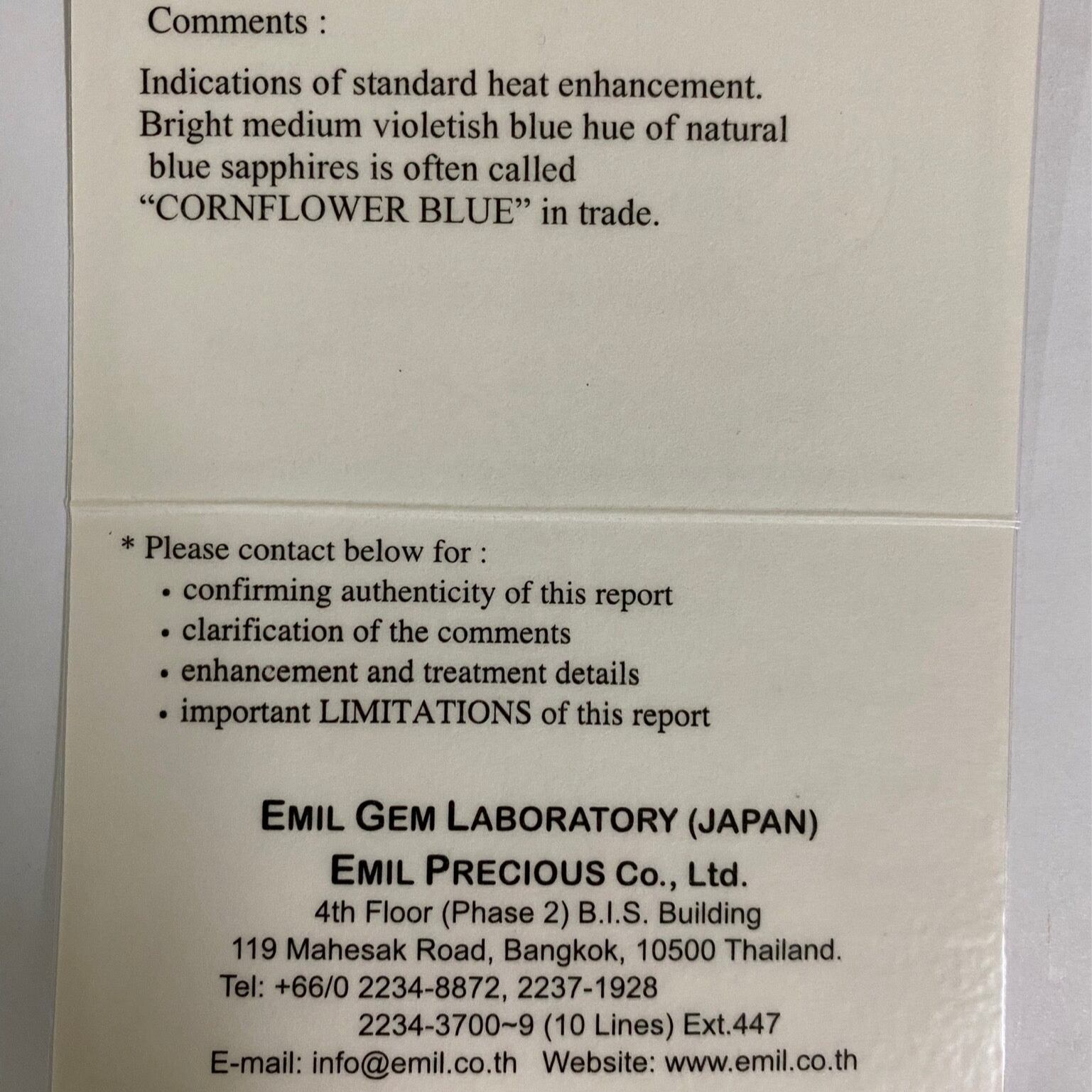 ロイヤルブルーとの境界線に近い濃厚なパープリッシュブルーが美しい、ビルマ産のコーンフラワーブルーサファイア。