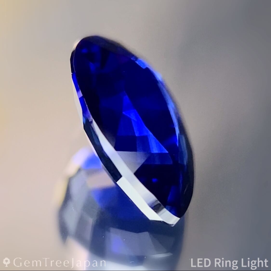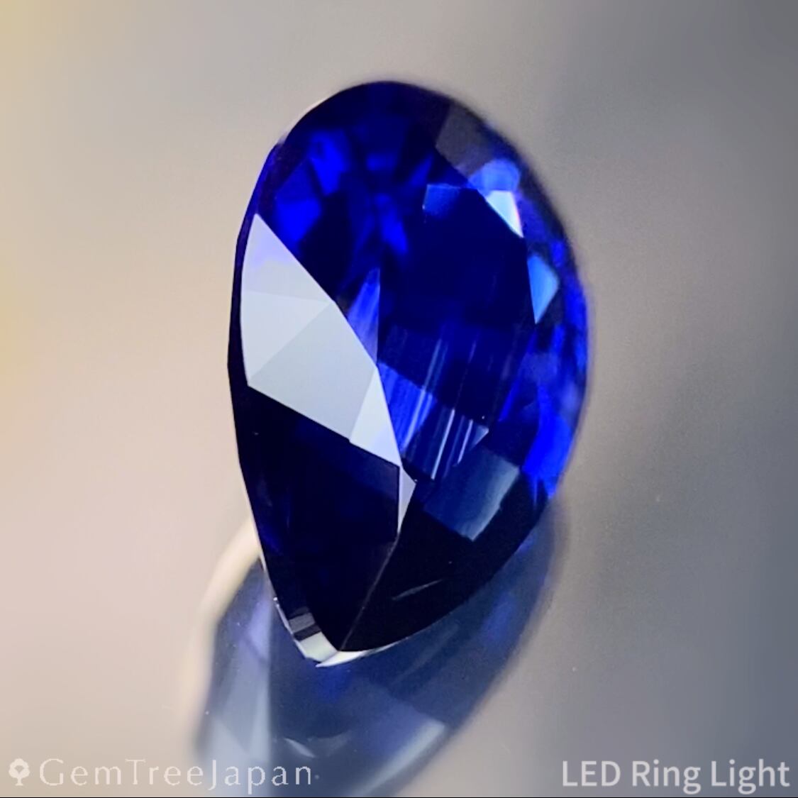 端正なペアシェイプに仕上げられ、両端に溜まる濃厚なブルーと鮮やかなブルーのコントラストが目を引きます。