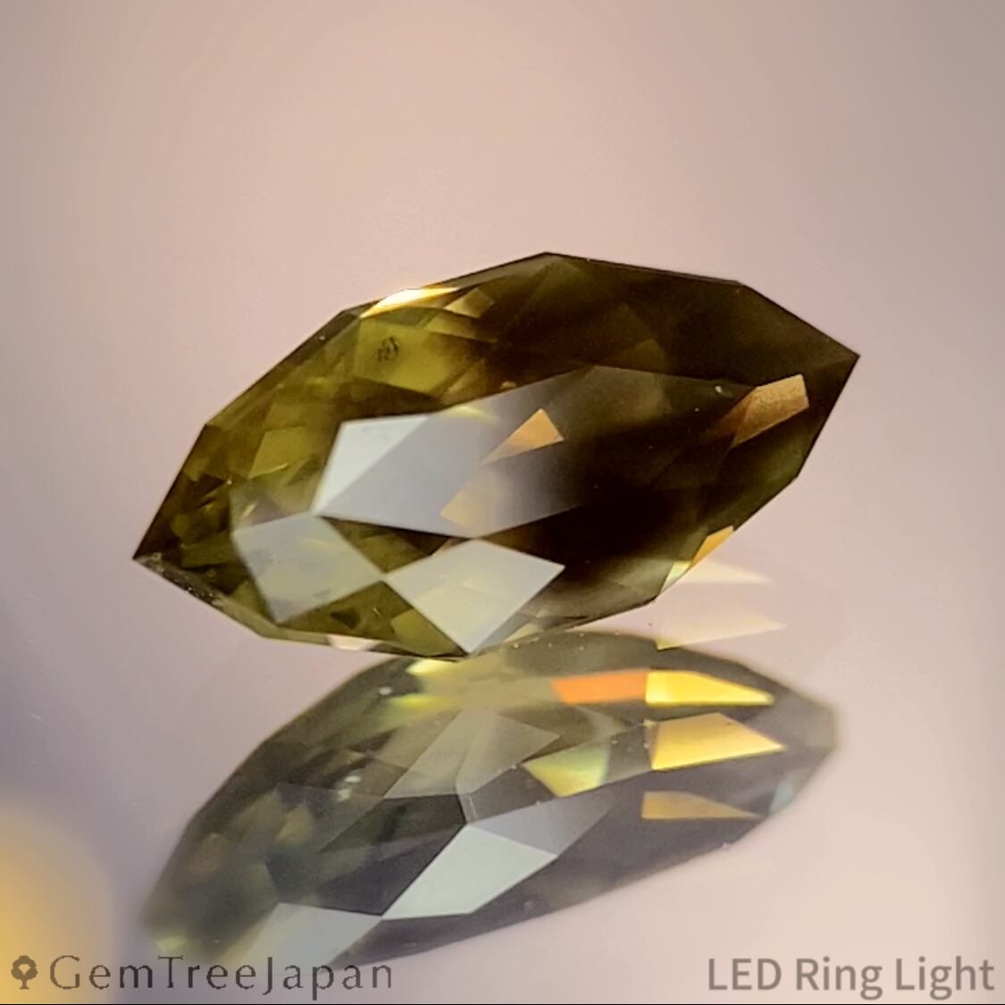 一見すると渋みのある落ち着いた印象ですが、角度によってフラワーカットが生み出す黄金の煌めきが広がり、光の中で鮮やかな変化を見せます。