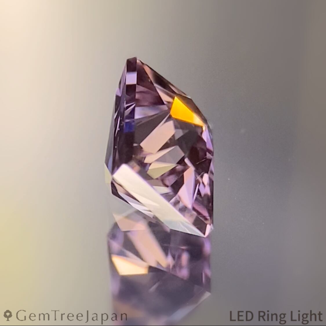 クラウン側から見ると全体に均一なカラーに見えますが、パビリオン側から見るとローズピンクとベージュピンクの二色にうっすらと分かれています。