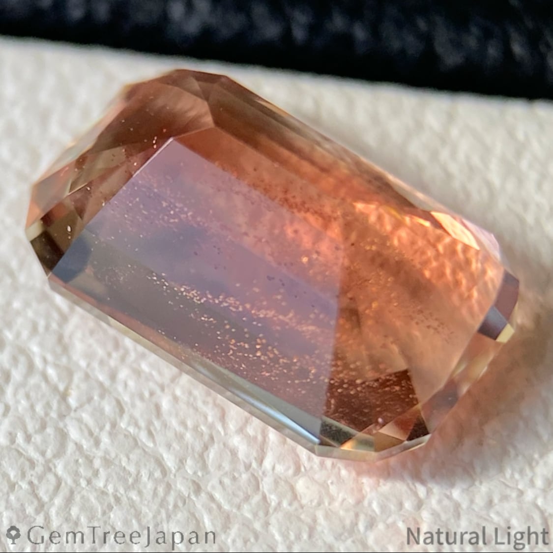 四隅を2段に縁取ったエレガントカットに仕上げ、オクタゴンよりも細やかなファセットワークが施され、ステップカットによる直線的な煌めきの脇に細やかな煌めきが溢れます。