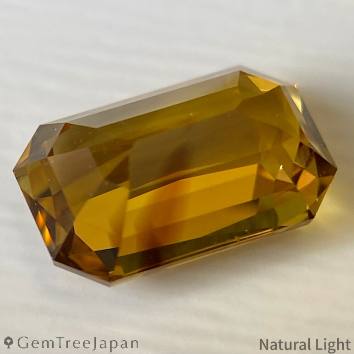 ゴールドにオレンジーブラウンの色だまりが入ったナイジェリア産クリソベリルで、オクタゴンシェイプに仕上げた作品です。