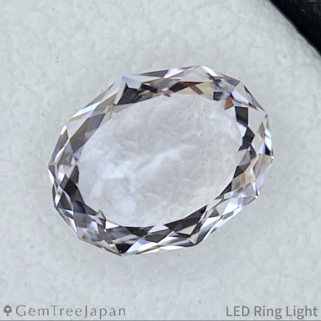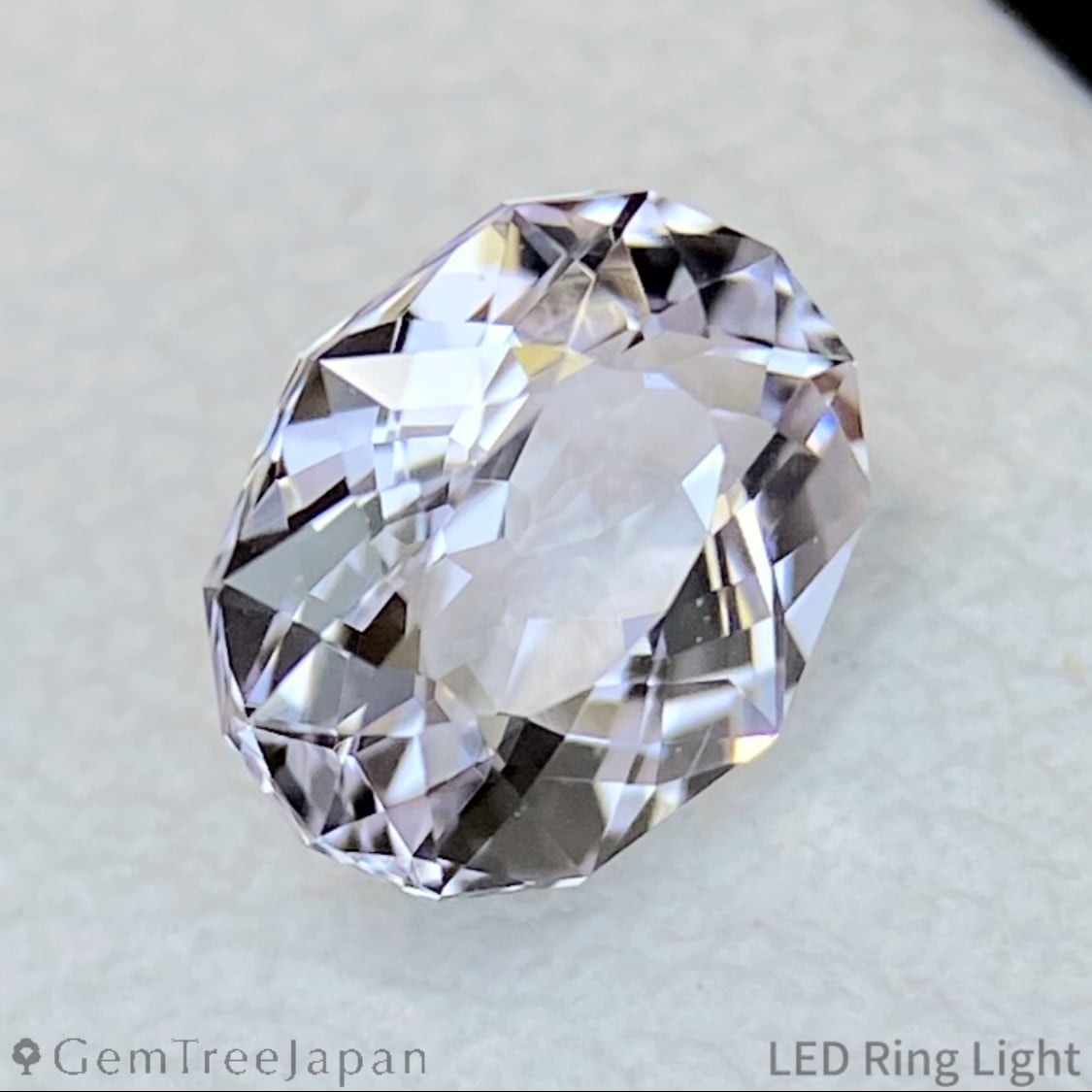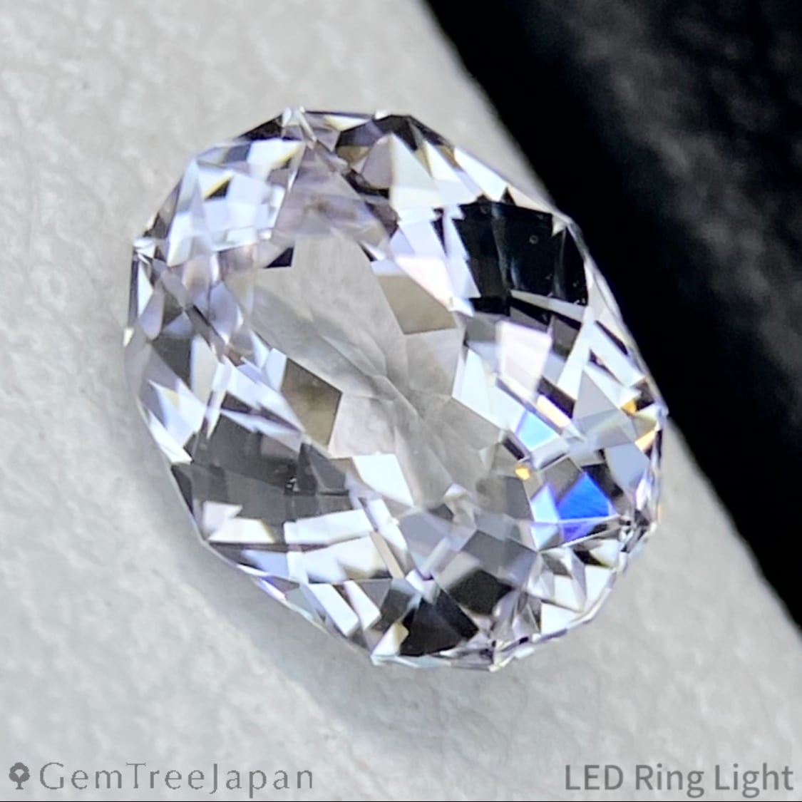 一口にカラーレスと言っても、わずかな色味を含む個体が多い中で、本石はホワイトの純度が非常に高く、ごく僅かにピンキッシュヴァイオレットを感じる程度の、カラーレススピネルとしてはなかなか精度の高い色合いを備えています。