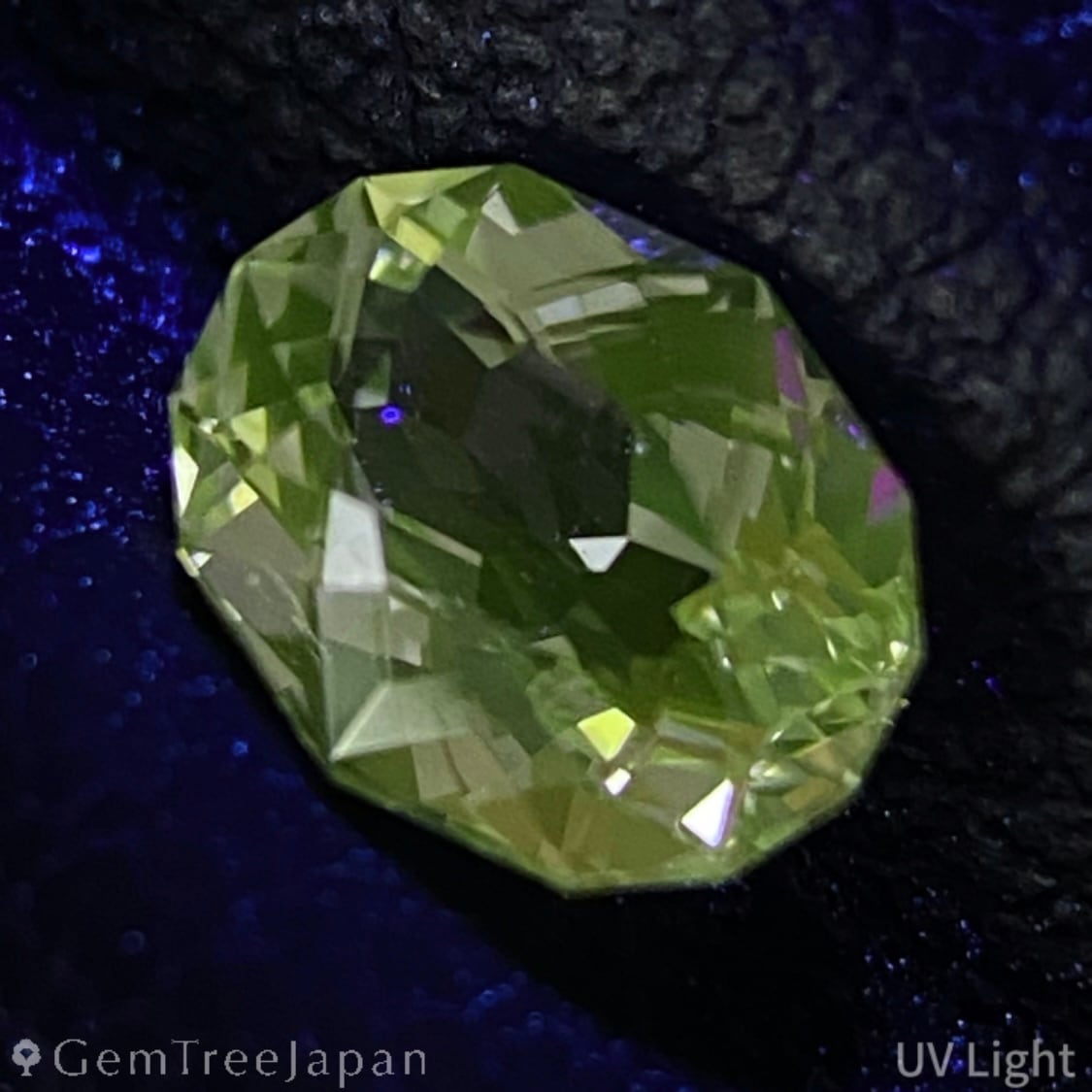 UVライトを当てると比較的珍しいイエローみを帯びたグリーンに蛍光します。