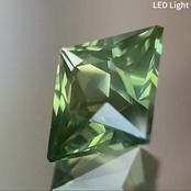 自然光ではブルーイッシュ感のあるグリーンにゴールドのシルクが広がり、若草色の鋭くも柔らかな煌めきを放ちます。回転台撮影はLEDライトによってイエロー寄りに色が出ていてシルクによって光を受けて明るい印象になっています。