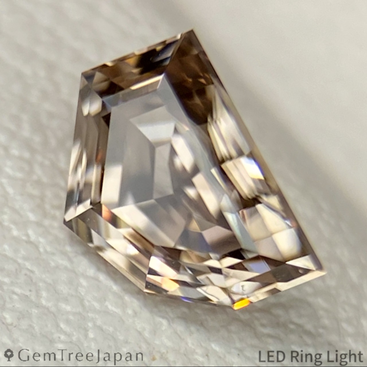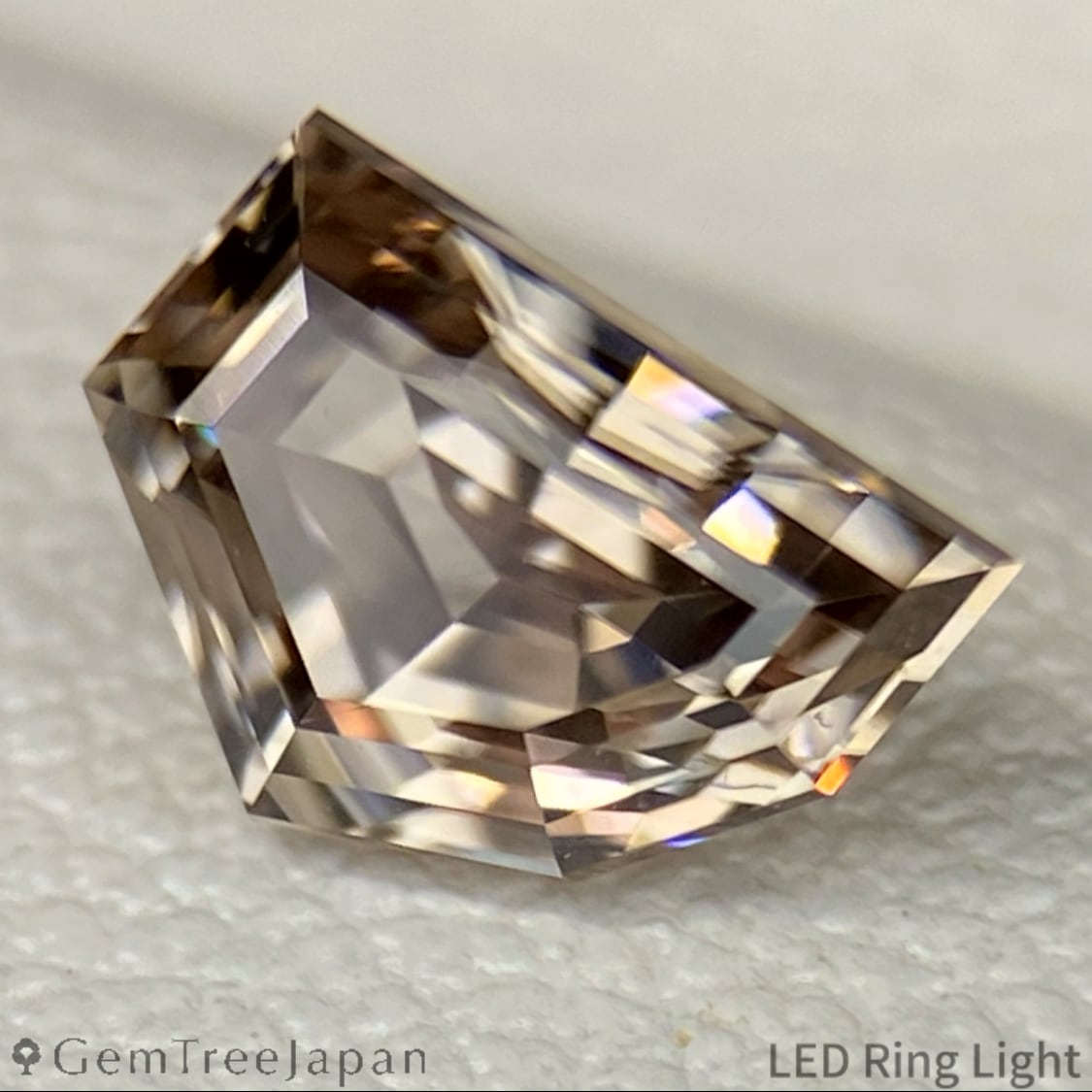 ブラウンダイヤモンドを連想させる穏やかな色合いを持ちながら、ダイヤモンドにも迫る鋭い煌めきと、ジルコン特有の豊かな分散によるカラフルなファイアーを存分に楽しめる一石です。