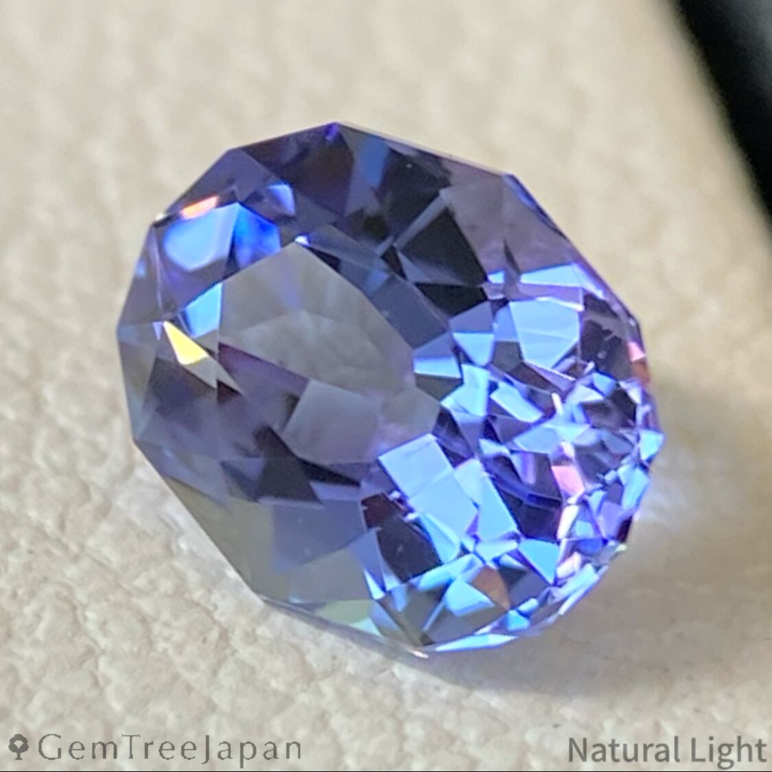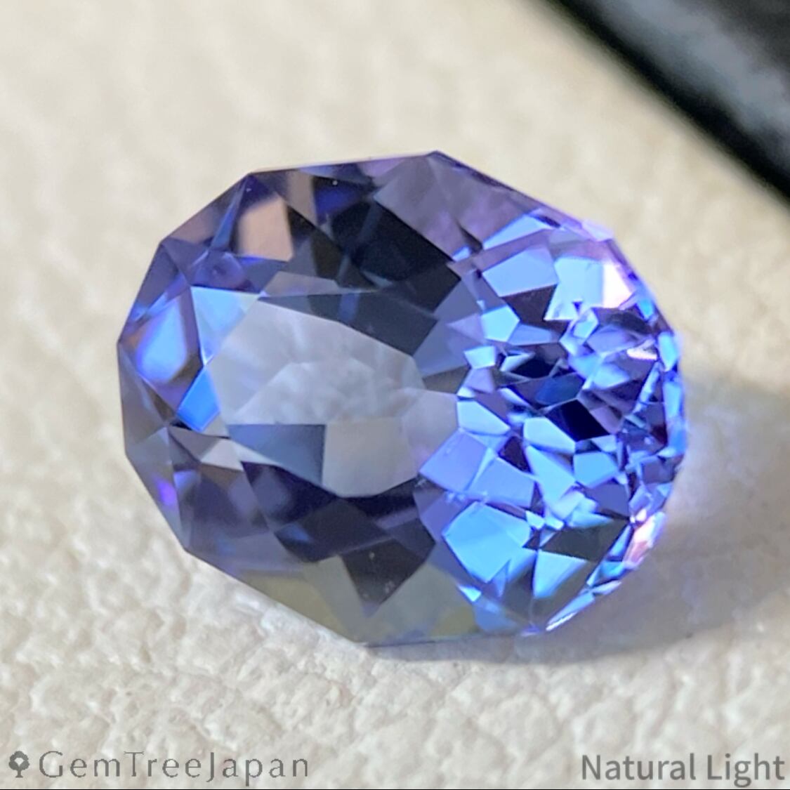 GTJらしい緻密なカットによって、タンザナイトの色・透明感・多色性をバランス良く引き出した完成度の高い一石。