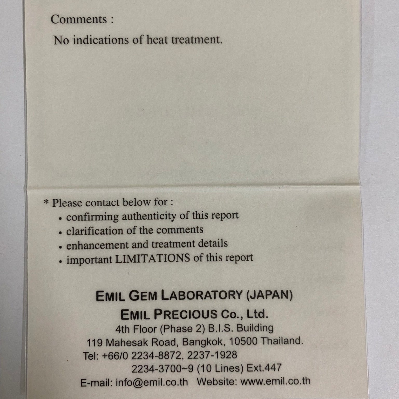 タイ産ルビーは地質的に鉄分含有量が高く、通常は加熱処理によって色調を調整して流通するケースが大半を占めます。