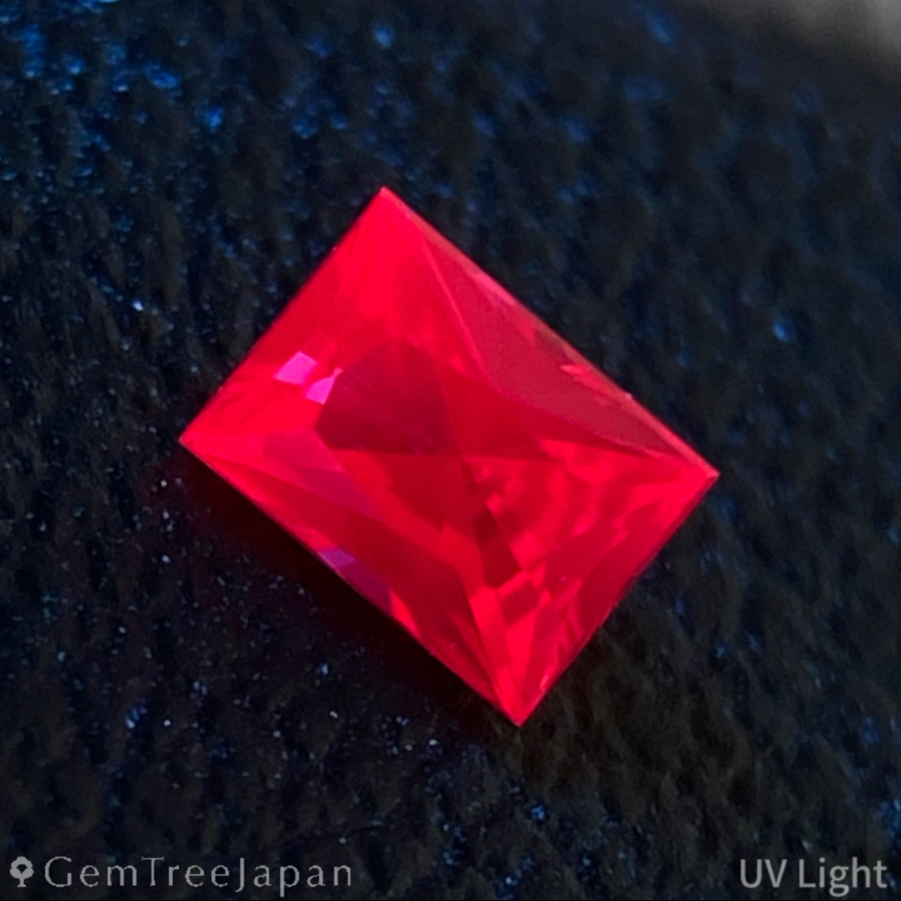 UVライトを当てるとピンキッシュオレンジーレッドに強蛍光します。