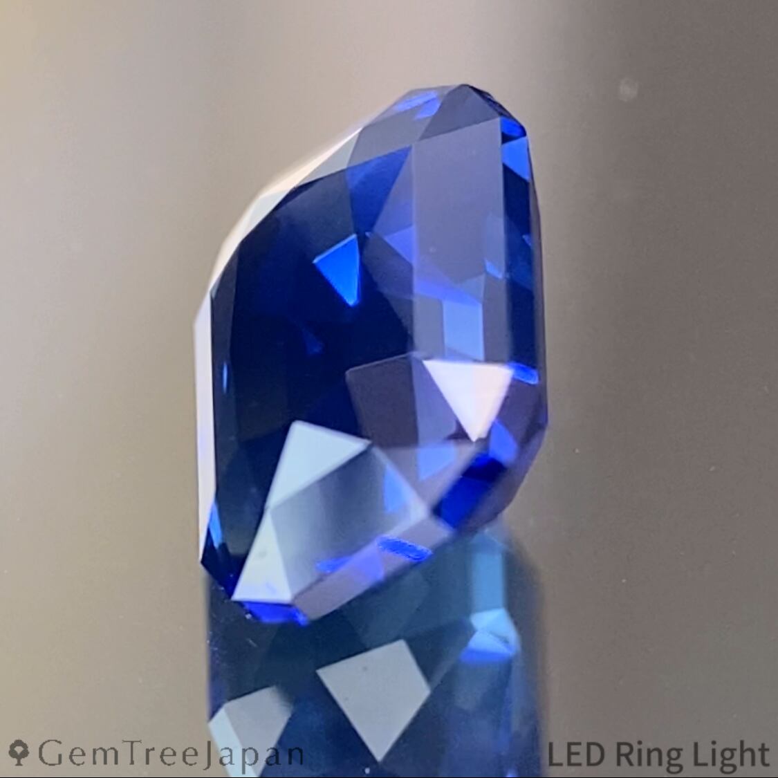 四隅を2段で縁取ったエレガントカットに仕上げられており、パビリオン側にはステップカットを採用。