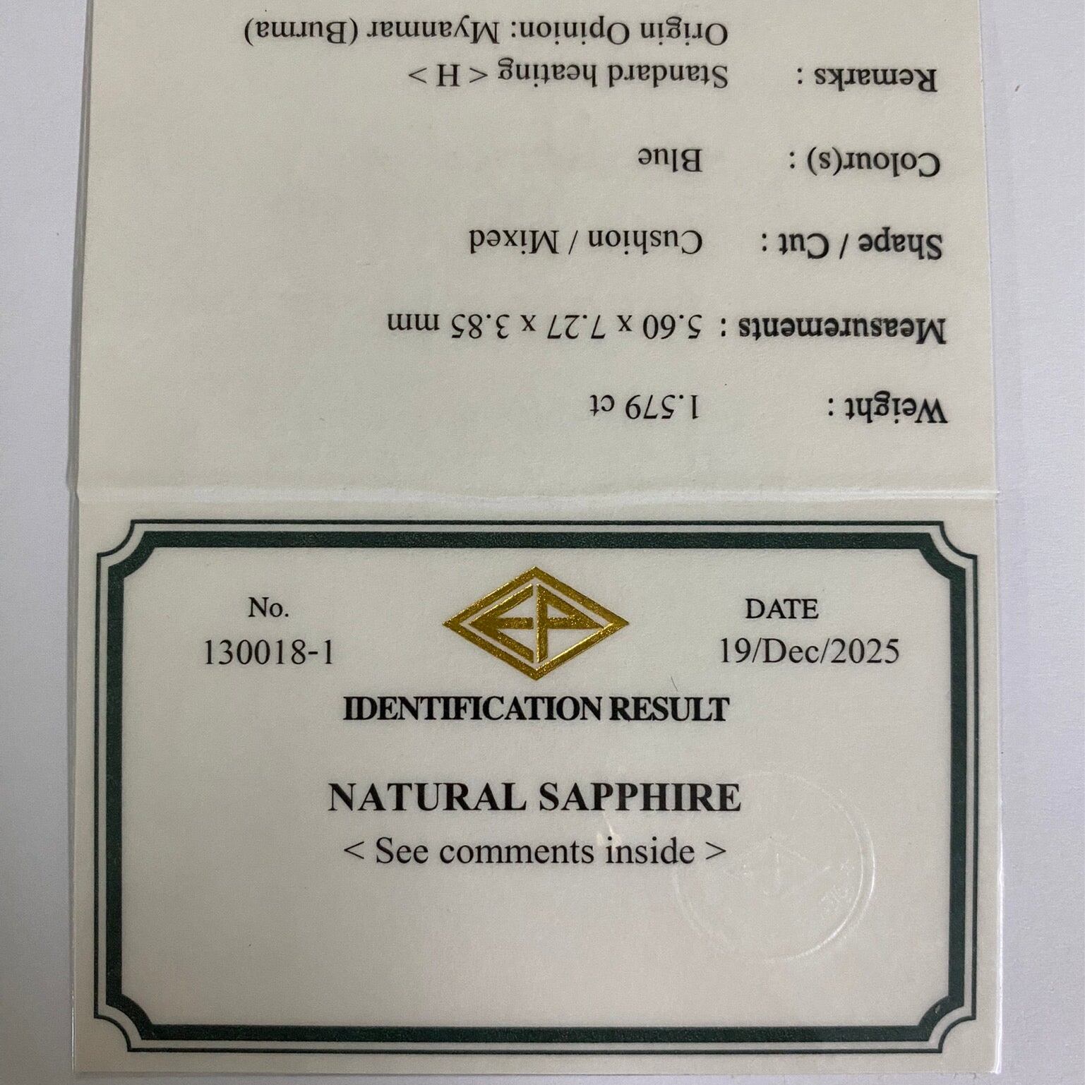 Cornflower Blue Sapphire 1.579ct / Burma
