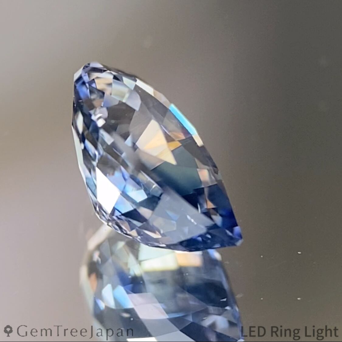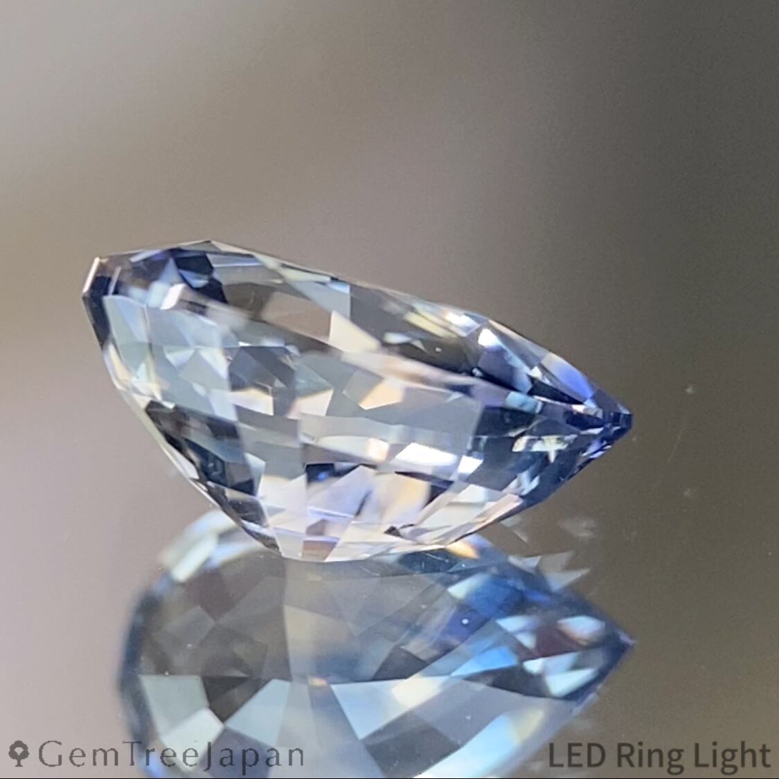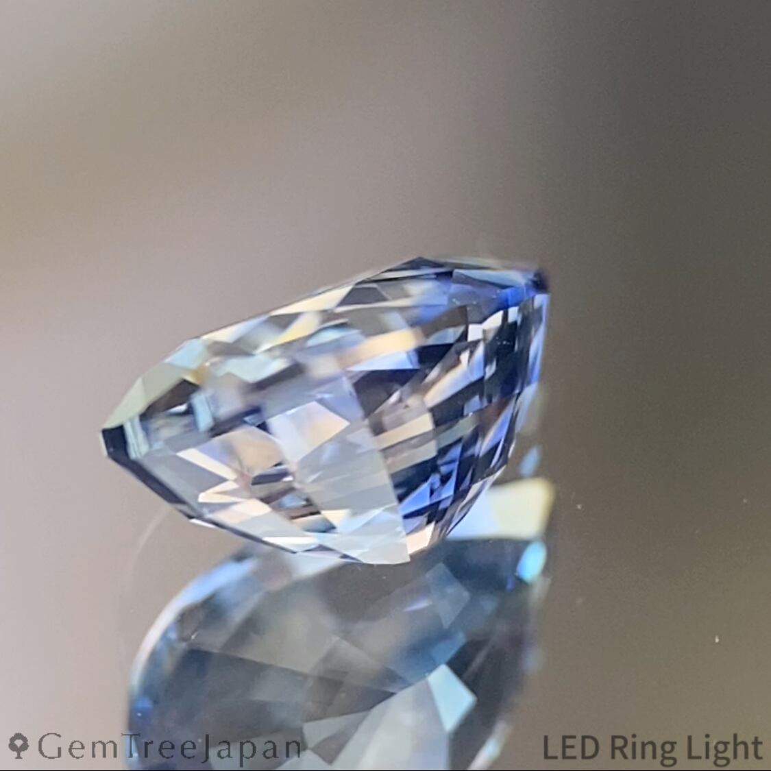 カラーレスゾーンには、ごく淡くイエローのニュアンスが感じられ、ルーペで観察すると、クラウン側にブルーが雲のように滲む様子も見られ、観察性の高さも楽しめます。
