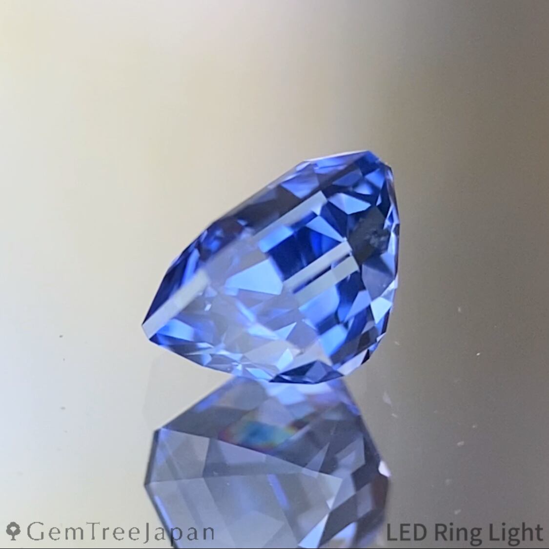 クラウン側にはGTJオリジナルのオクタゴンキューブカットが施され、テーブルの周りに立体的な形が浮かび、ステップカットによる直線的な煌めきを活かしながら、四隅に細やかな煌めきを生み出しています。