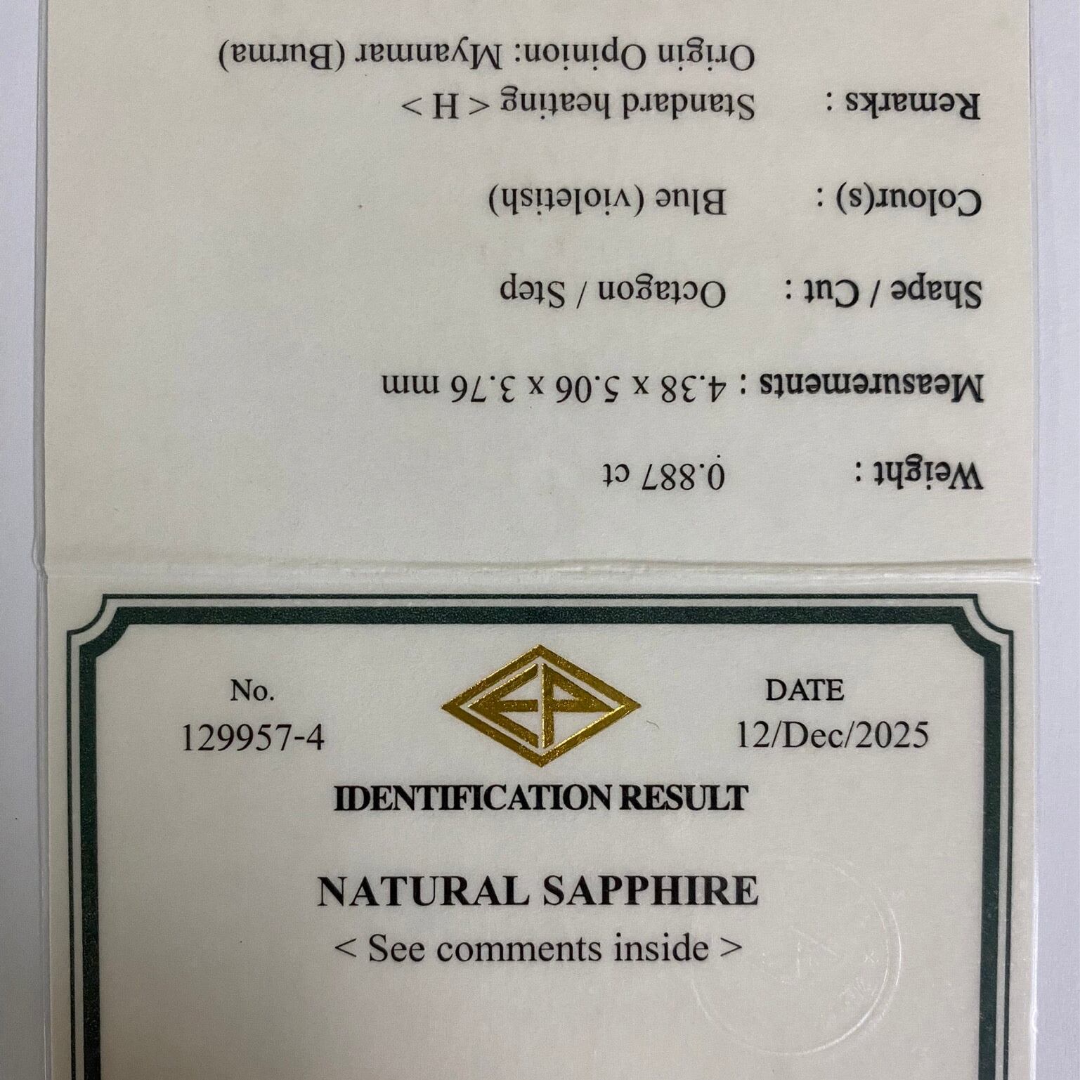 端正なオクタゴンにステップカットが施され、面で光るシャープな輝きと、四隅に溜まる弾けるような細かな煌めきが華やかさをより際立てます。