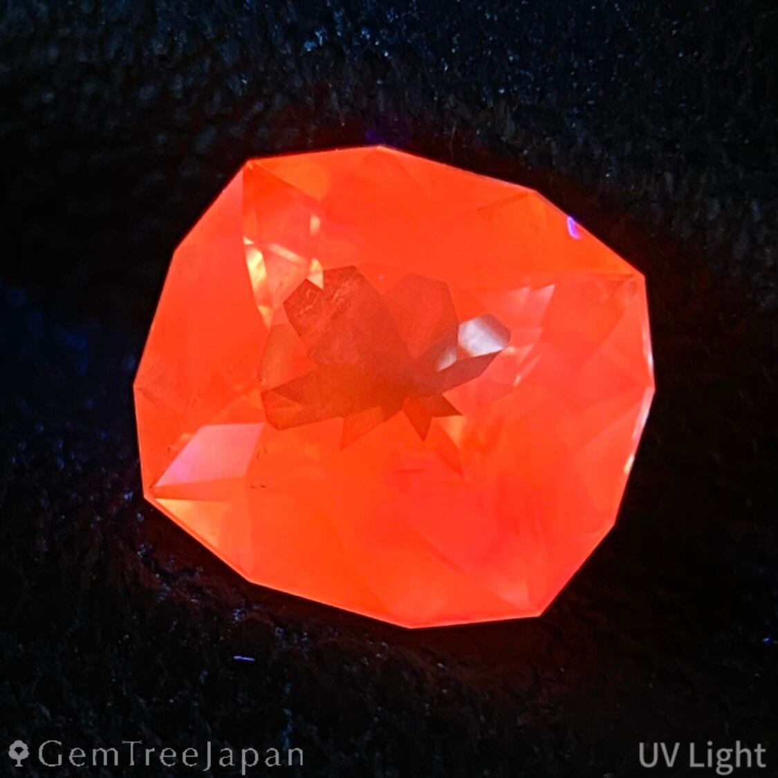 UVライトを当てるとレディッシュオレンジに蛍光します。