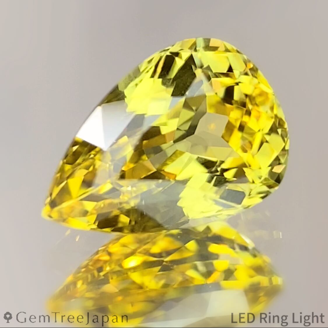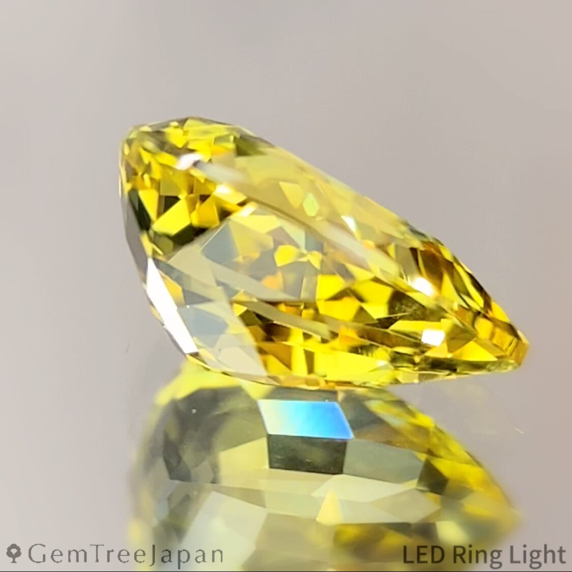 元々の状態はカットにやや荒さがあったものの、先端に溜まる鮮やかなイエローと柔らかいイエローのコントラストが美しい宝石でした。